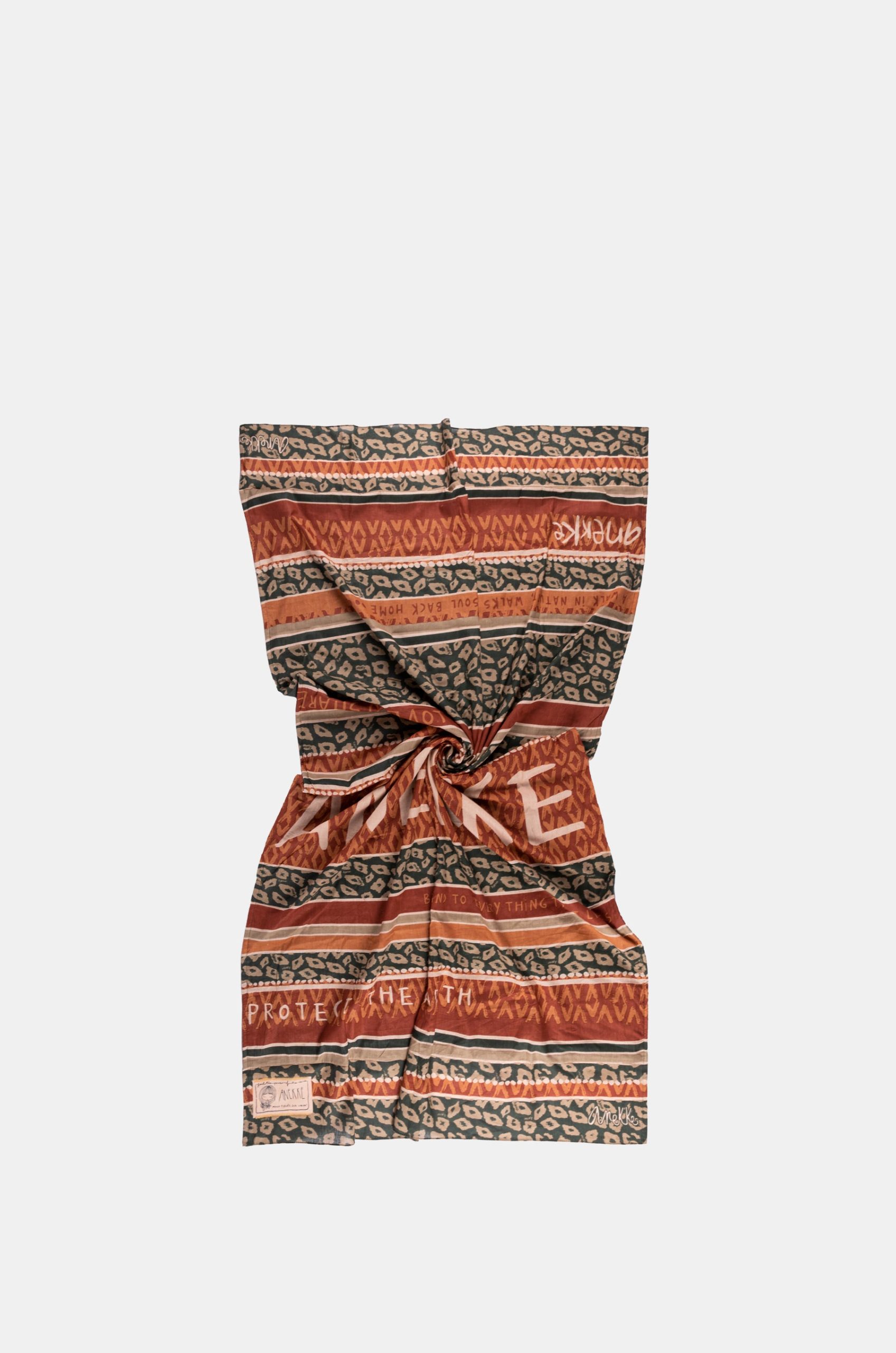 Its original design features a leopard print in green tones, combined with tribal shapes in reddish tones and the Anekke logo.
