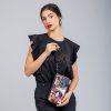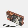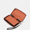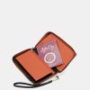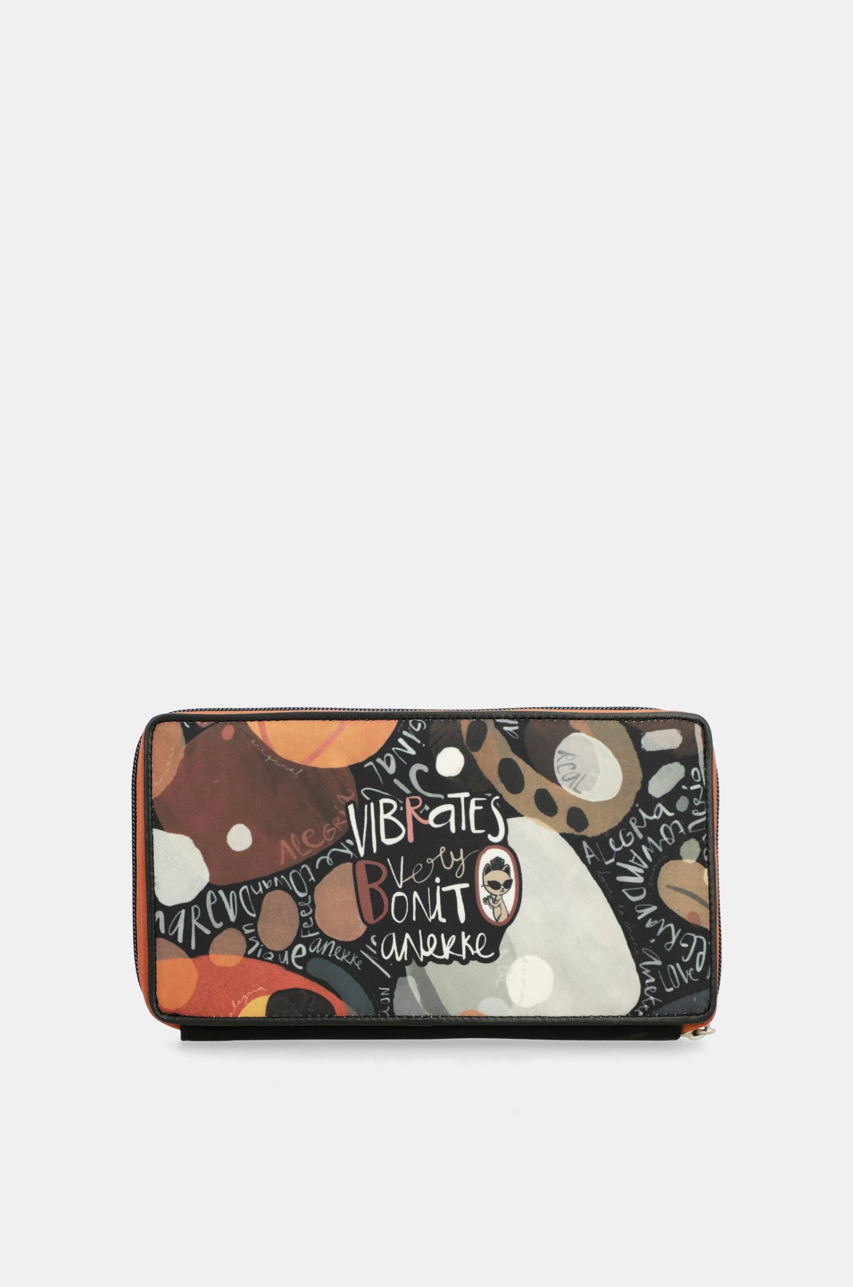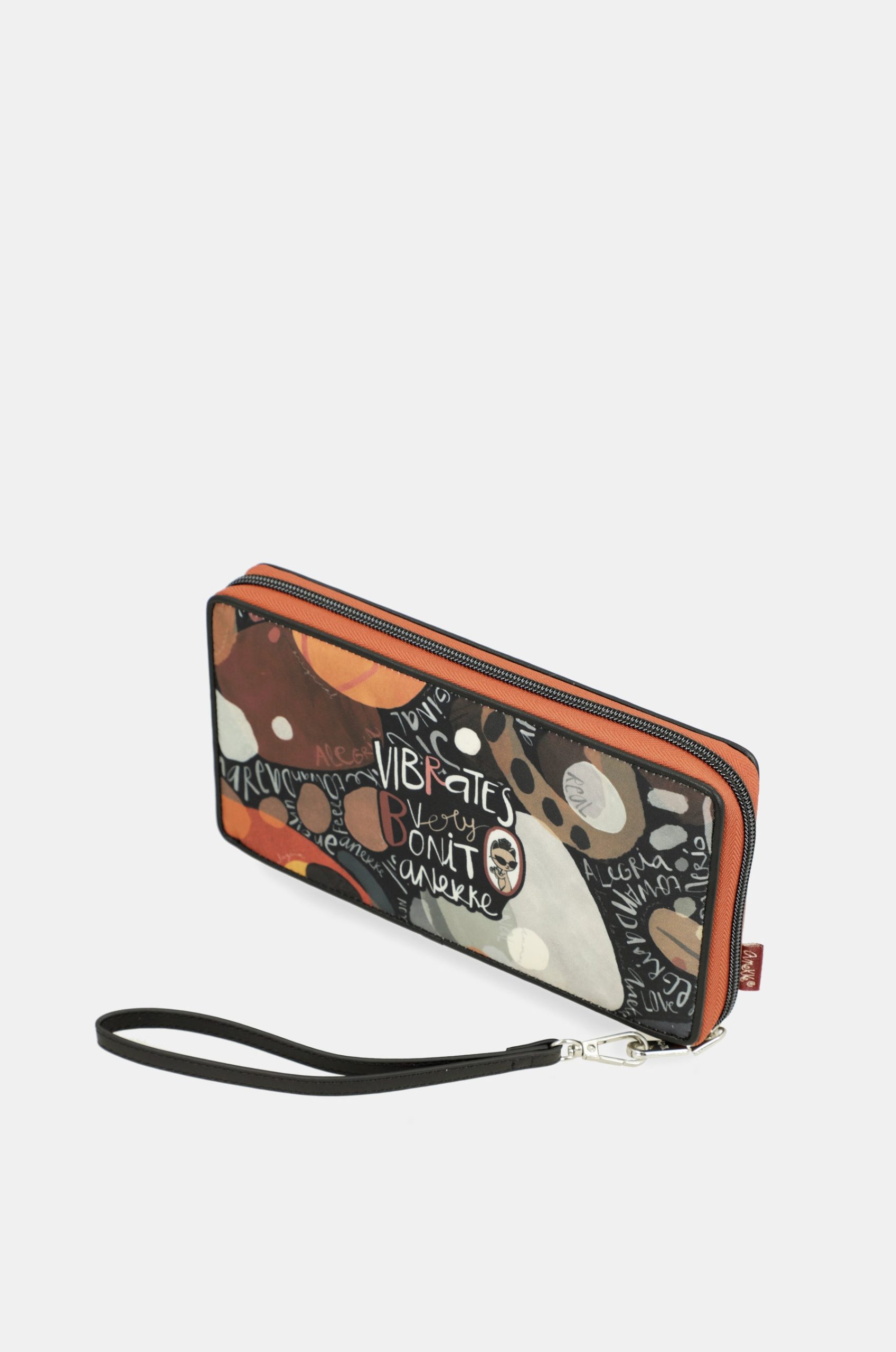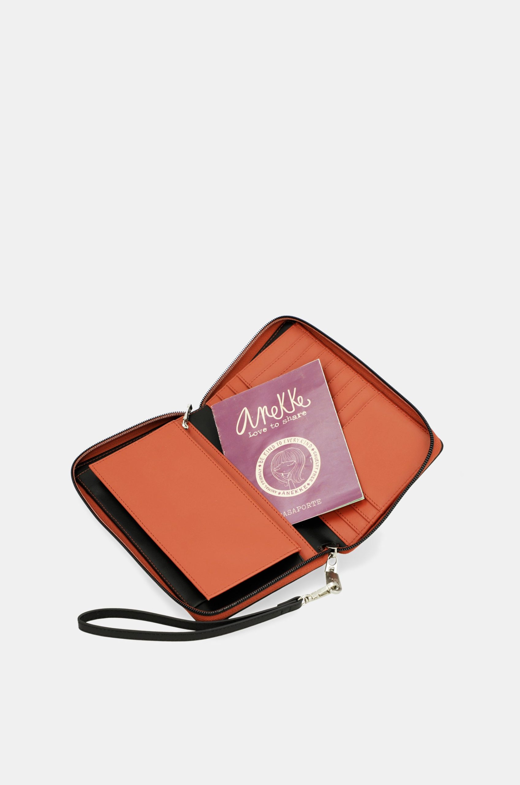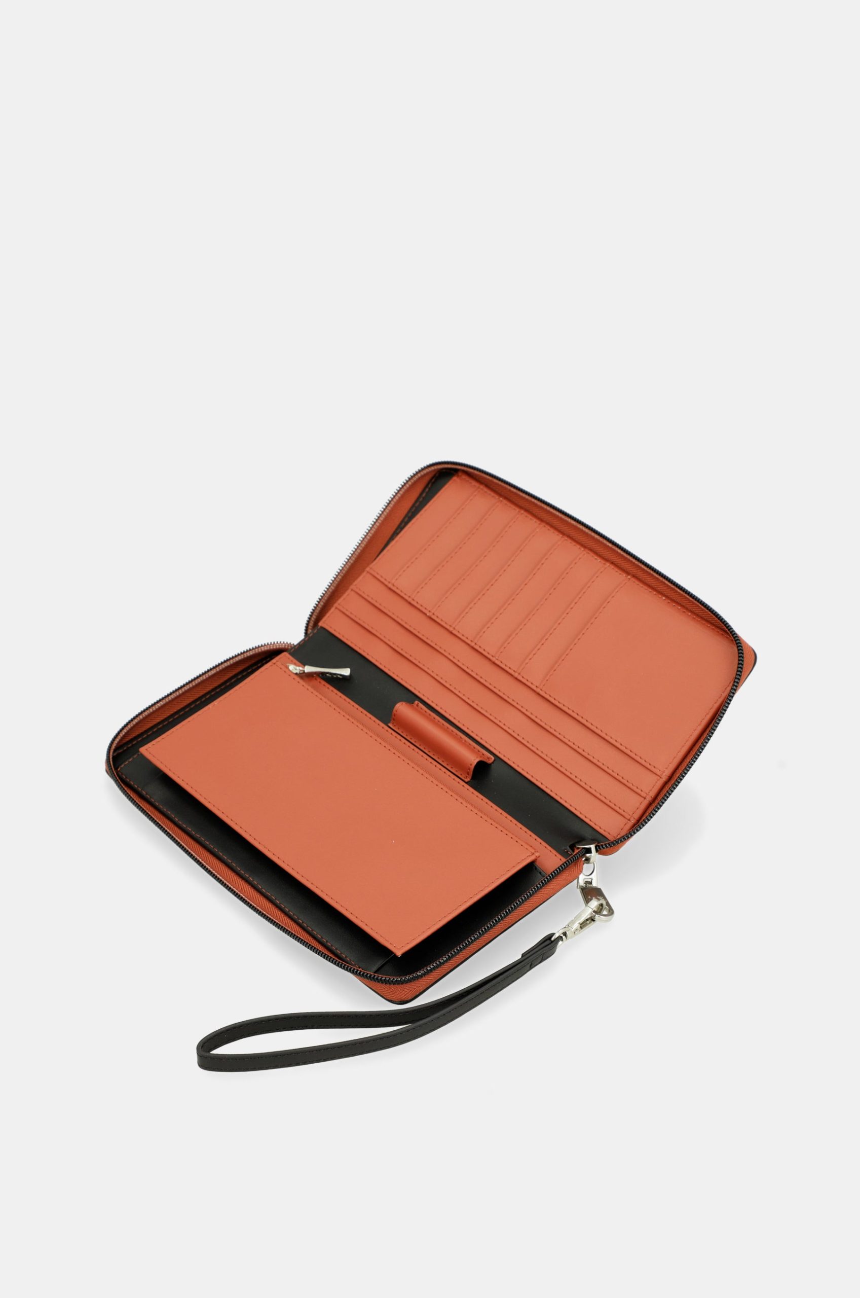 This soft travel wallet is large in size and has two main compartments: in the back you will find a large wallet with space for bills, cards or documents, and at the top, a compartment with a zipper closure where you can store coins. The entire interior is lined for added protection.