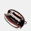 It opens at the top with a zipper, where it houses a large lined interior with different dividers and a central pocket.
