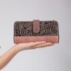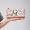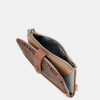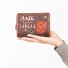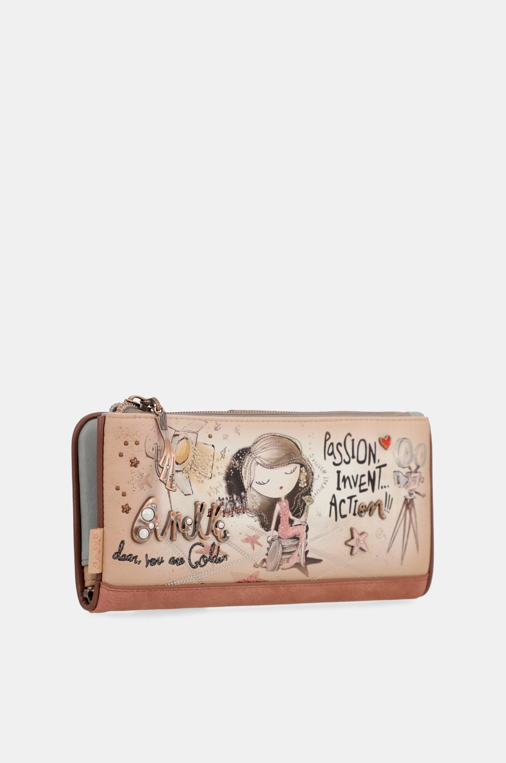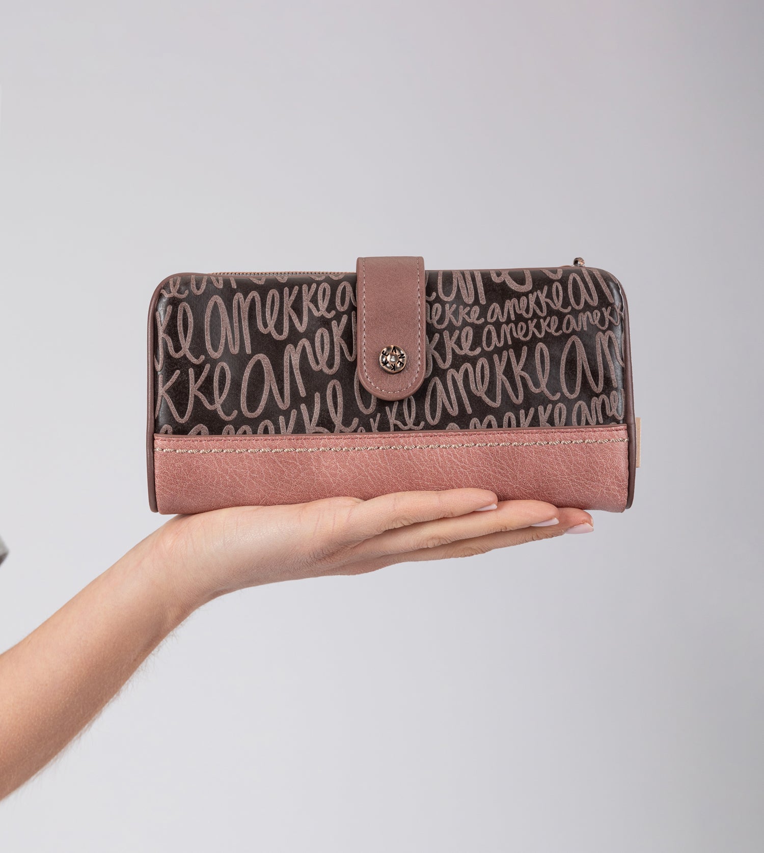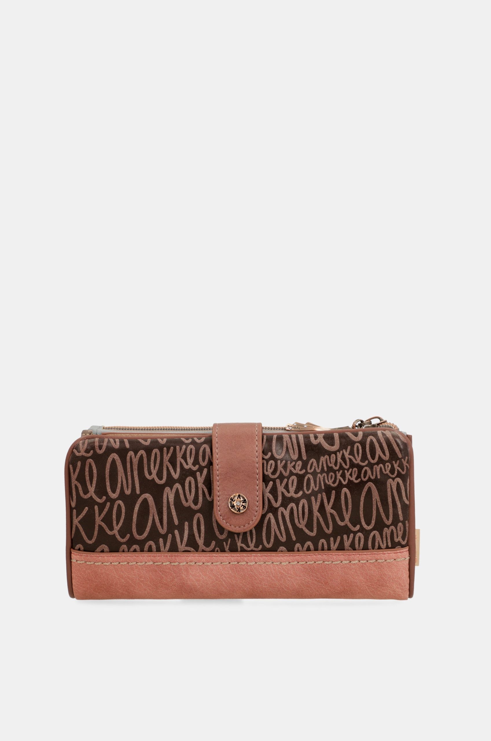 This large-sized wallet is made of flexible material. It has two main compartments: the back, where you will find a large billfold and space for banknotes and/or cards. It has a zip at the top, and inside you can keep coins. The entire interior is lined. It also has a removable cardholder inside.