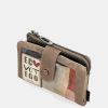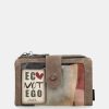 This medium-sized wallet is made of flexible material, has two main compartments: the back, where you will find a large billfold and space for banknotes and/or cards. It has a zip at the top, and inside you can keep coins. The entire interior is lined.