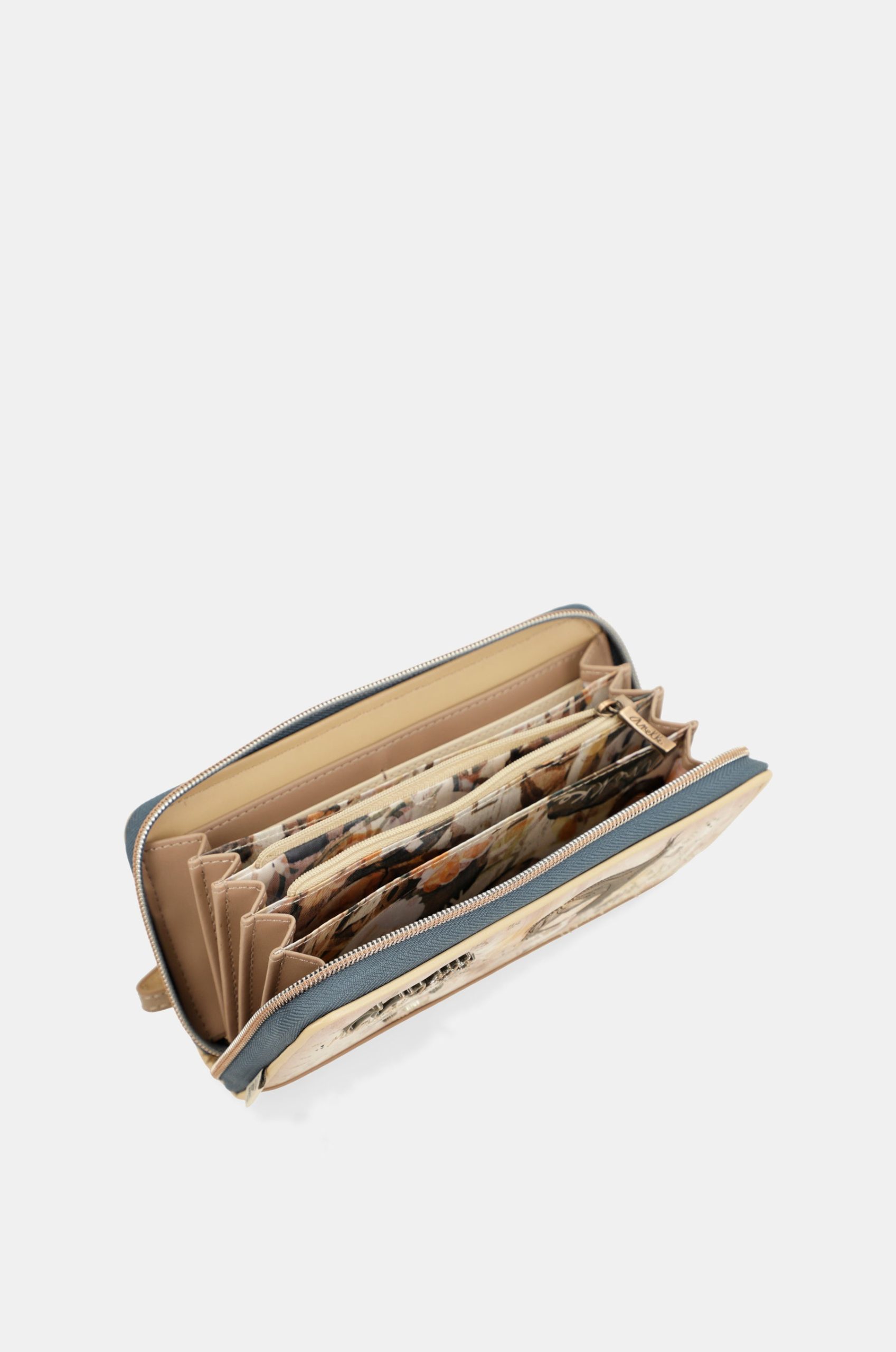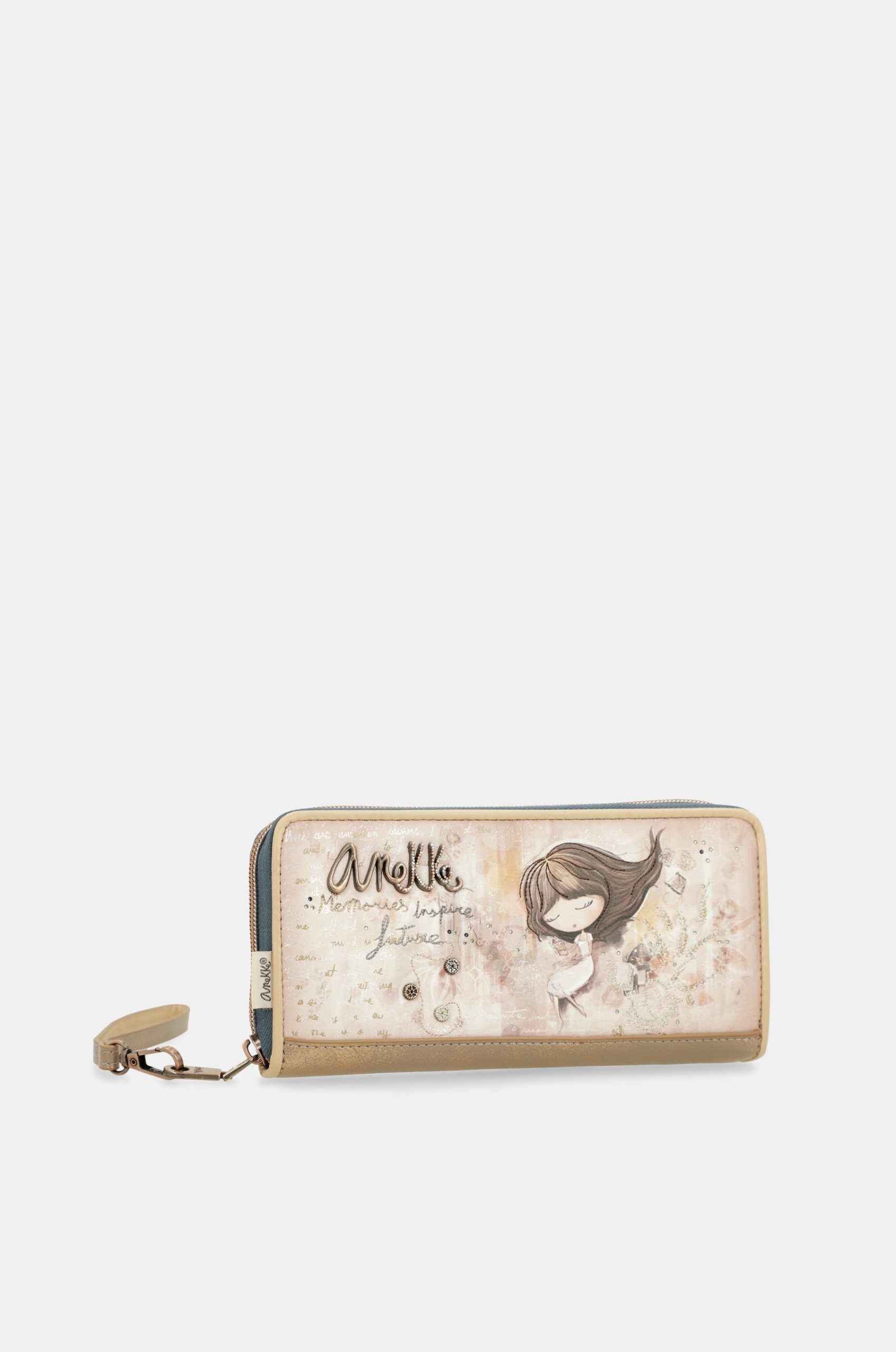 Anekke Memories is a collection built around Anekke’s memories. It’s a journey through some of the brand’s most iconic collections, represented in the print on the front with nods to their characteristic elements. A lighthouse from Mediterranean, the sun and stars from Universe, the suitcase from Travel, or the books from Jane will take you on a journey through Anekke’s memories. Are you ready to start this journey into Anekke’s past? The more you look at the print, the more collections you’ll discover. Start your journey into Anekke’s past here! This is a large-sized wallet. You can also use it as a small handbag, or to carry your mobile phone. It is a very comfortable style that opens with a zip, has a lined interior and a hand strap that is attached to the zip puller. Inside, there is space for cards, banknotes and a compartment with a zippered pocket for coins for added convenience. Because memories inspire the future, get ready to enjoy them with Anekke!