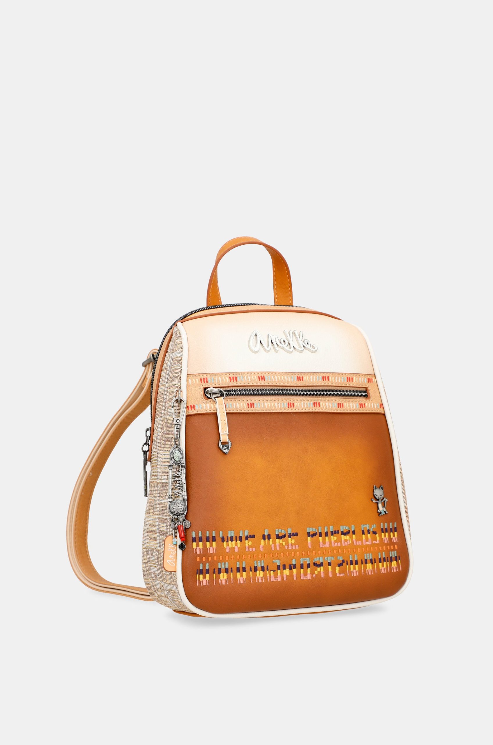 This magic souls backpack for strolling is part of the Anekke Menire collection, a tribute to the indigenous women’s collectives of the Amazon, who struggle to preserve their environment and traditions.