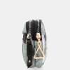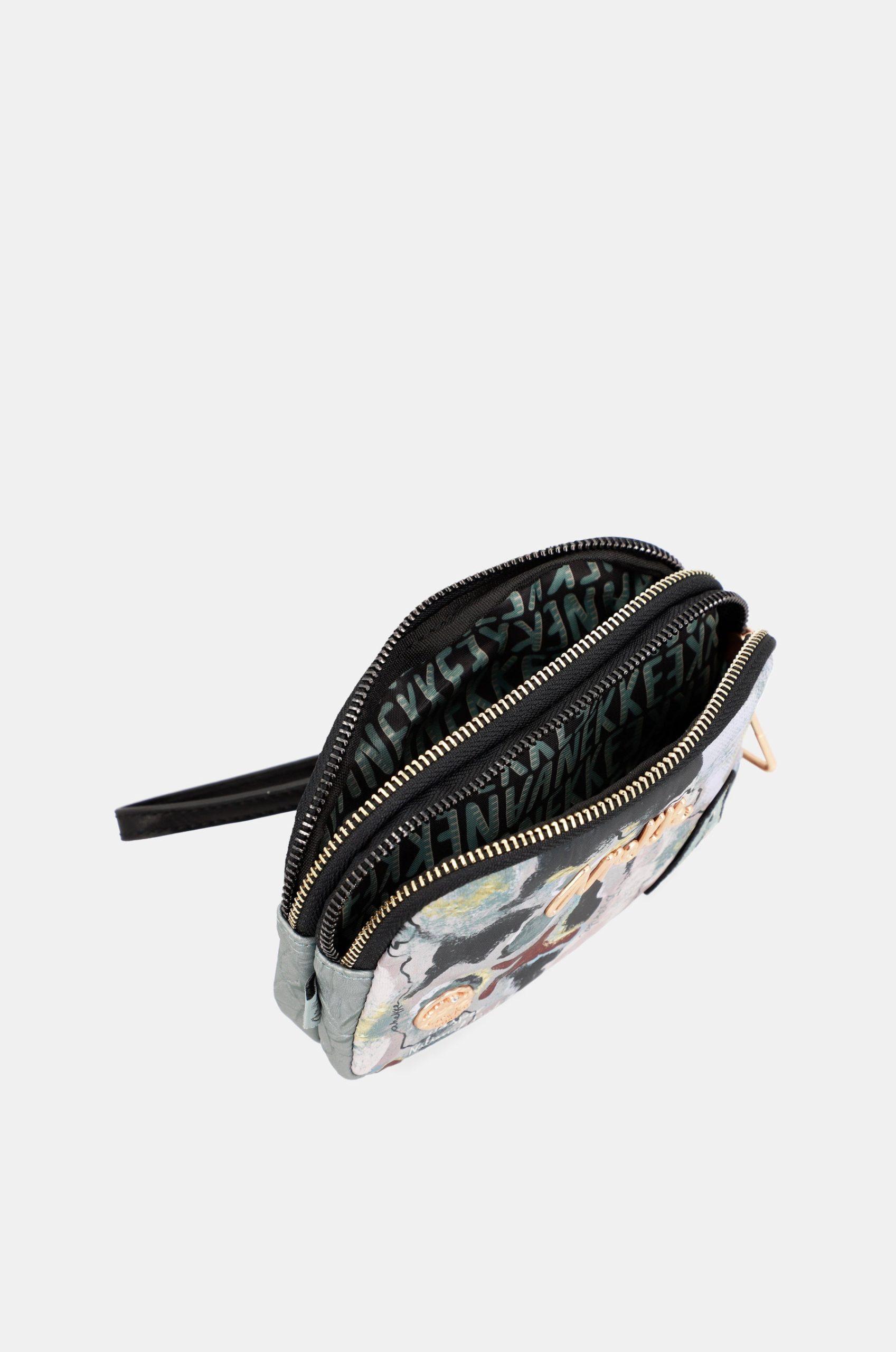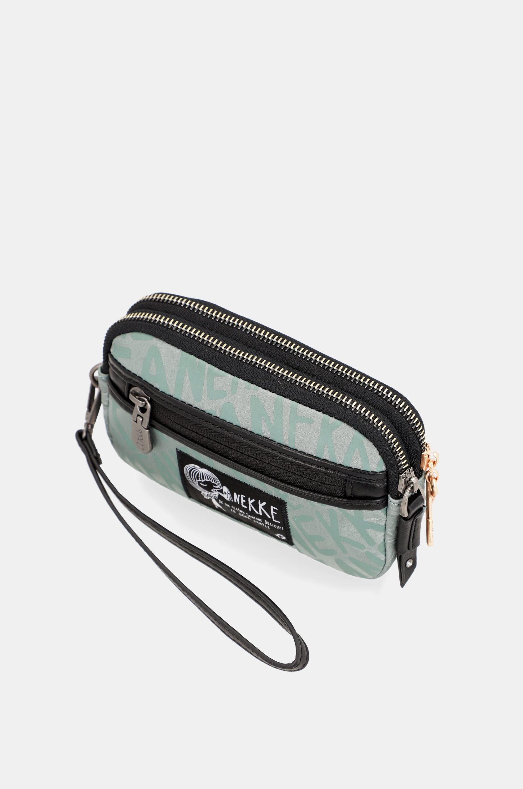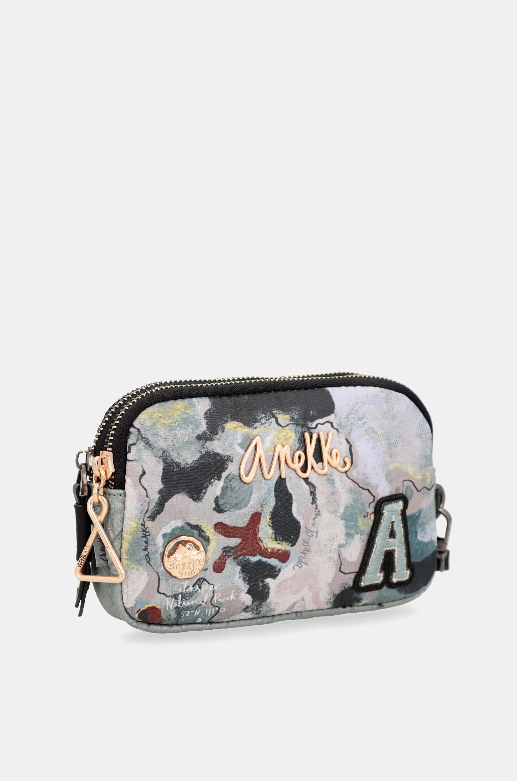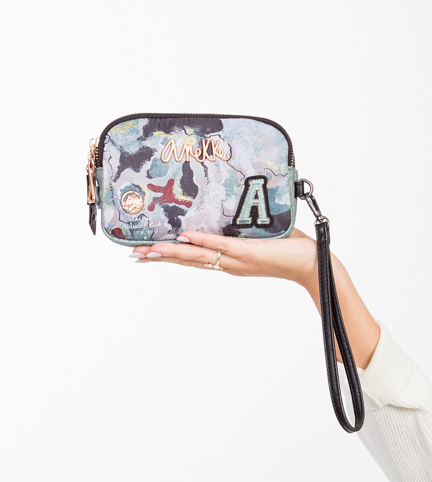 It is a model made with a nylon type material, very light and flexible, where black, gray and white tones stand out, with touches of green, maroon and yellow. The interior is lined with an original fabric printed with motifs from the collection, and has pockets.