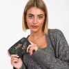 It has two main compartments: the upper part, where you will find a large wallet and space for bills or documents. In the back it has a tab closure and card holder. The entire interior is lined.