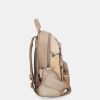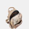 This large-sized backpack has a zip closure, lined interior and pockets. It also has exterior pockets on the front, back and both sides for added convenience. It has two backpack straps adjustable to different lengths, plus a grab handle.