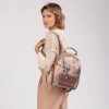 This large-sized backpack has a zip closure, lined interior and pockets. It also has exterior pockets on the front, back and both sides for added convenience. It has two backpack straps adjustable to different lengths, plus a grab handle.