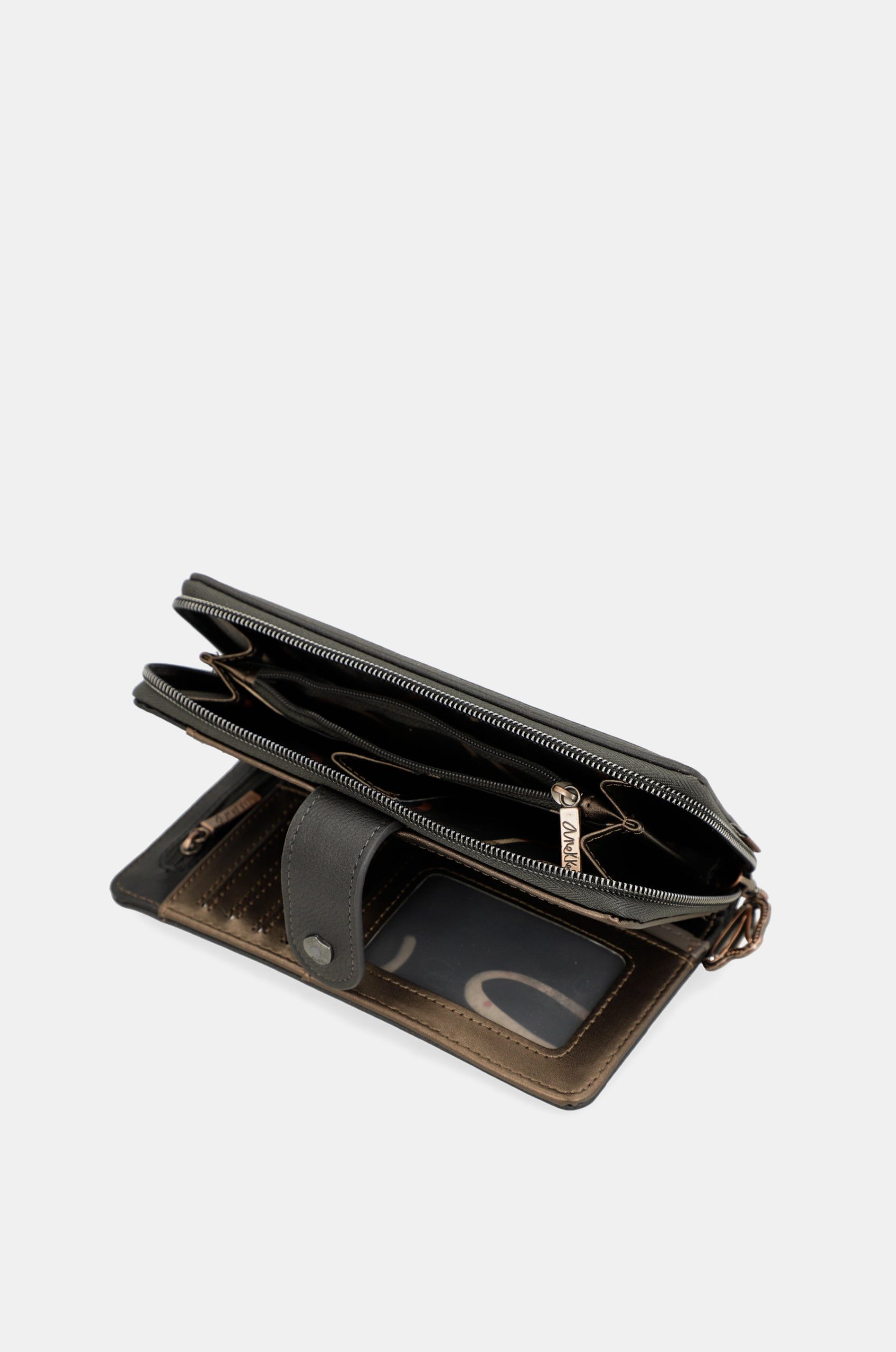 This large-sized wallet has two main compartments: the back, where you will find a large billfold and space for banknotes, cards or documents. It has a zip at the top, and inside you can keep coins. The entire interior is lined.