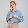 It is blue, with half sleeves and a button closure. When wearing it, style it however you want! You can wear it loose, as an over-shirt, with pants or a skirt… A myriad of possibilities to tell a little more about yourself to the world.