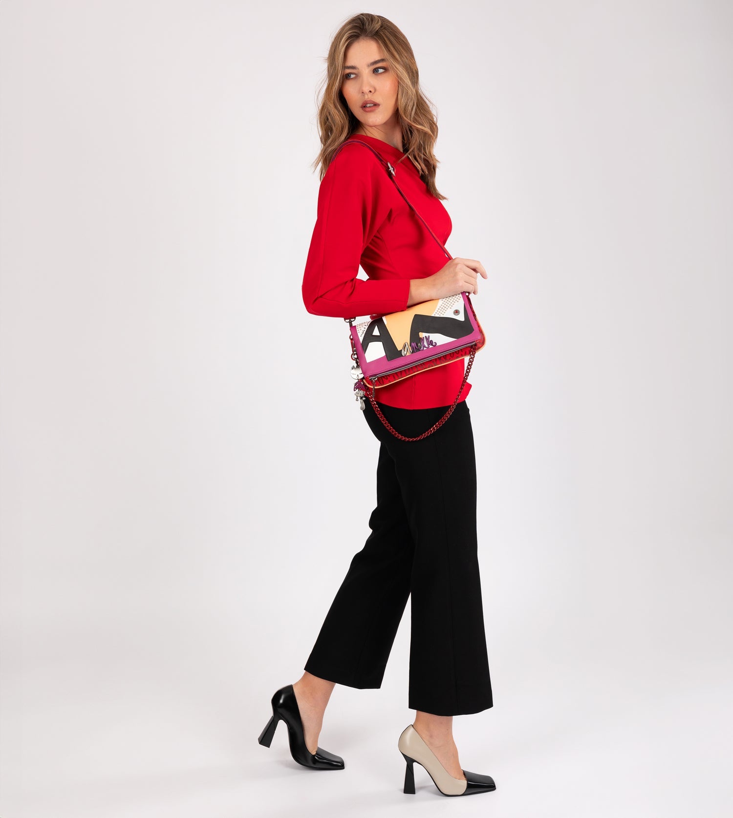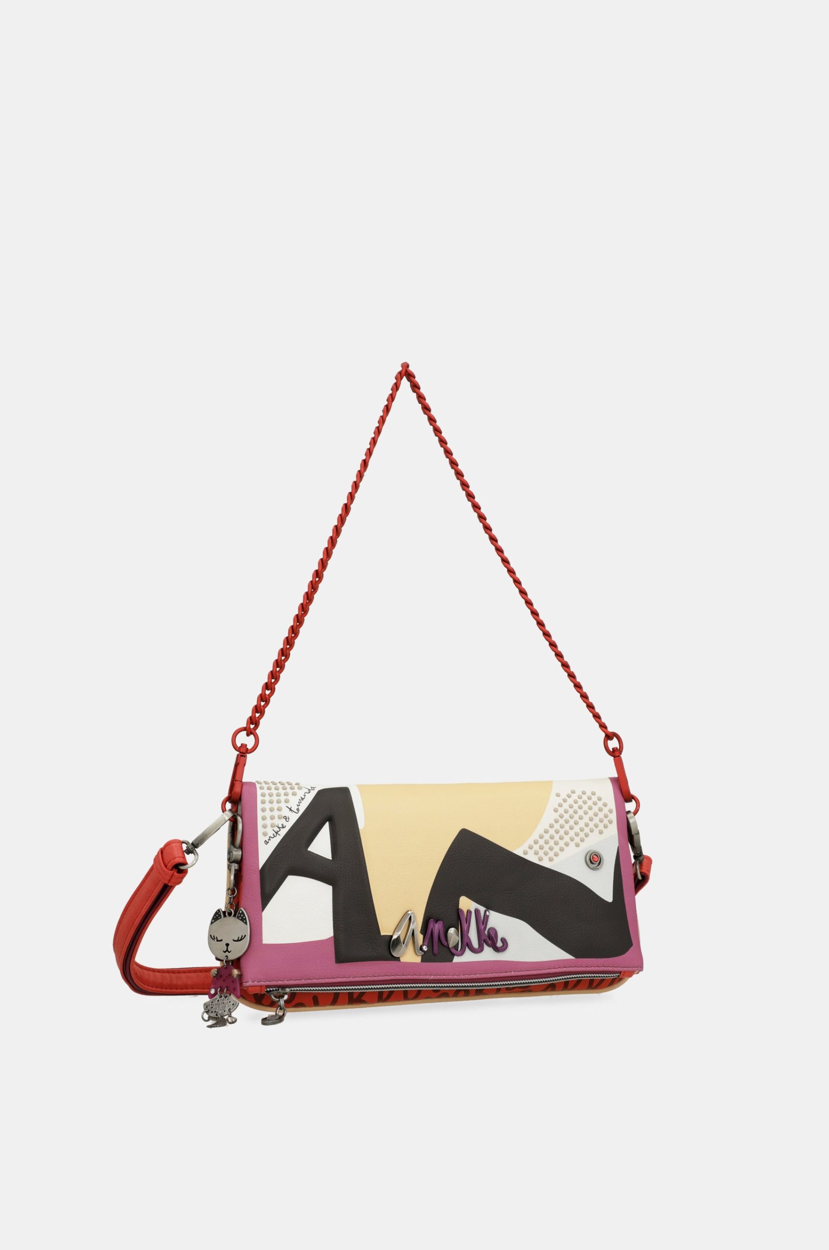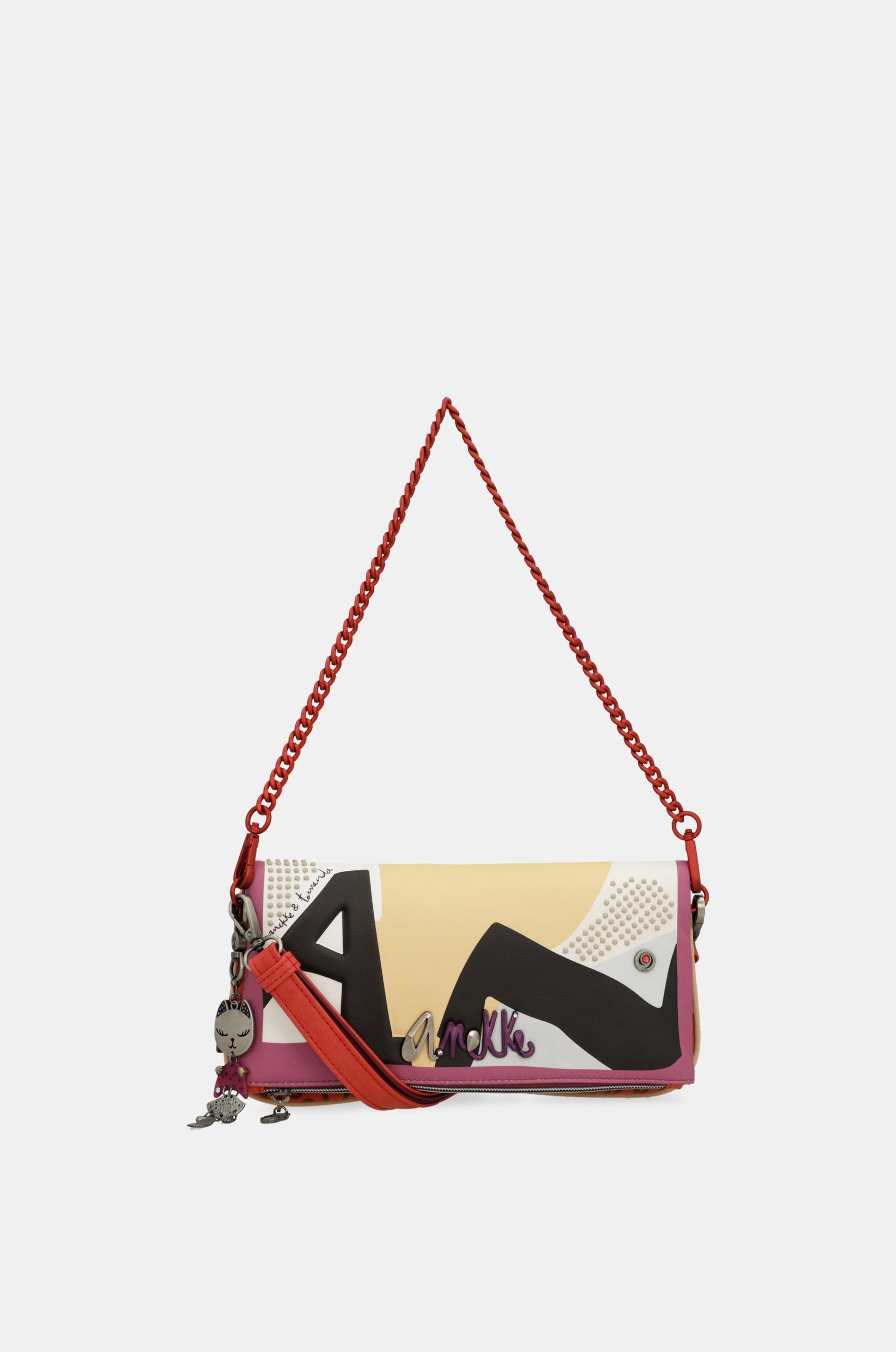 “Your best suit is your mind,” Hedy Lamarr. This legendary actress was a benchmark of classic cinema, not only thanks to her great career as an actress, but also for her other facet as a scientist. She was the inventor of wifi! Nothing feels better than following your dreams, just like Hedy Lamarr did, accompanied by a beautiful accessory inspired by the glamour of old Hollywood, just like this one from Anekke Hollywood’s Fashion line. With a vintage touch in its design, the colour block trend takes centre stage with a cheerful combination of red, yellow and purple, contrasted with the Anekke letters A N K in black.