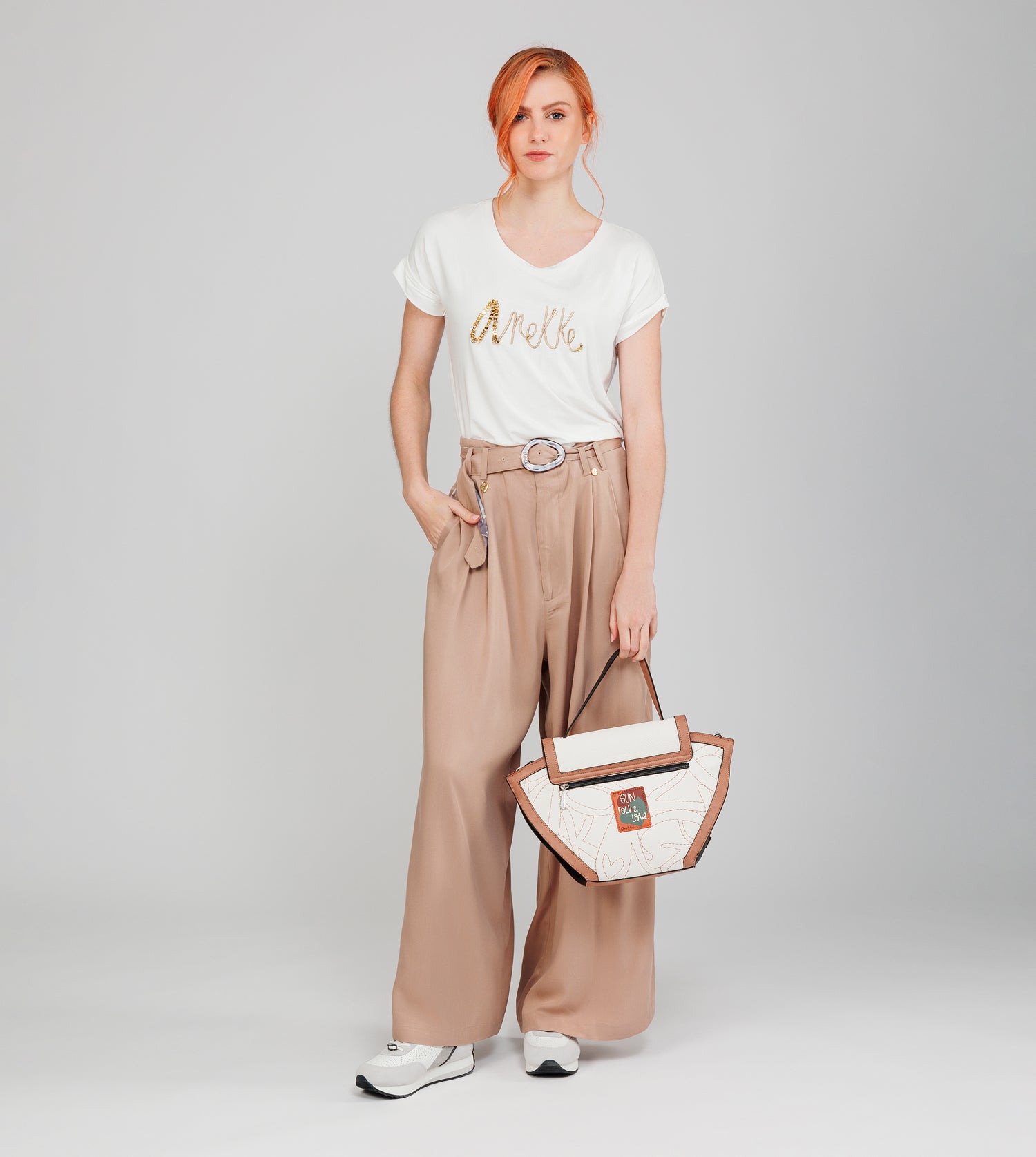Anekke Alma is a collection inspired by a journey through Anekke’s homeland: Spain. Every small detail is inspired by the roots, culture, and richness of Spain. Reinterpreted polka dots and fans, cheerful colors, and countless nods to our traditions will be your ticket to a journey like no other: with soul. This flap closure bag features lining and interior pockets, plus exterior pocket on the back. It is a large capacity bag with zipper closure for added security. You can choose to wear it with its hand handle or to add its shoulder strap adjustable to different lengths. It is, without a doubt, a tribute to the country that saw Anekke grow up. Because there are journeys made with the soul, and this one begins in the country Anekke calls home. Ready to dance with soul? Get your new favorite now!