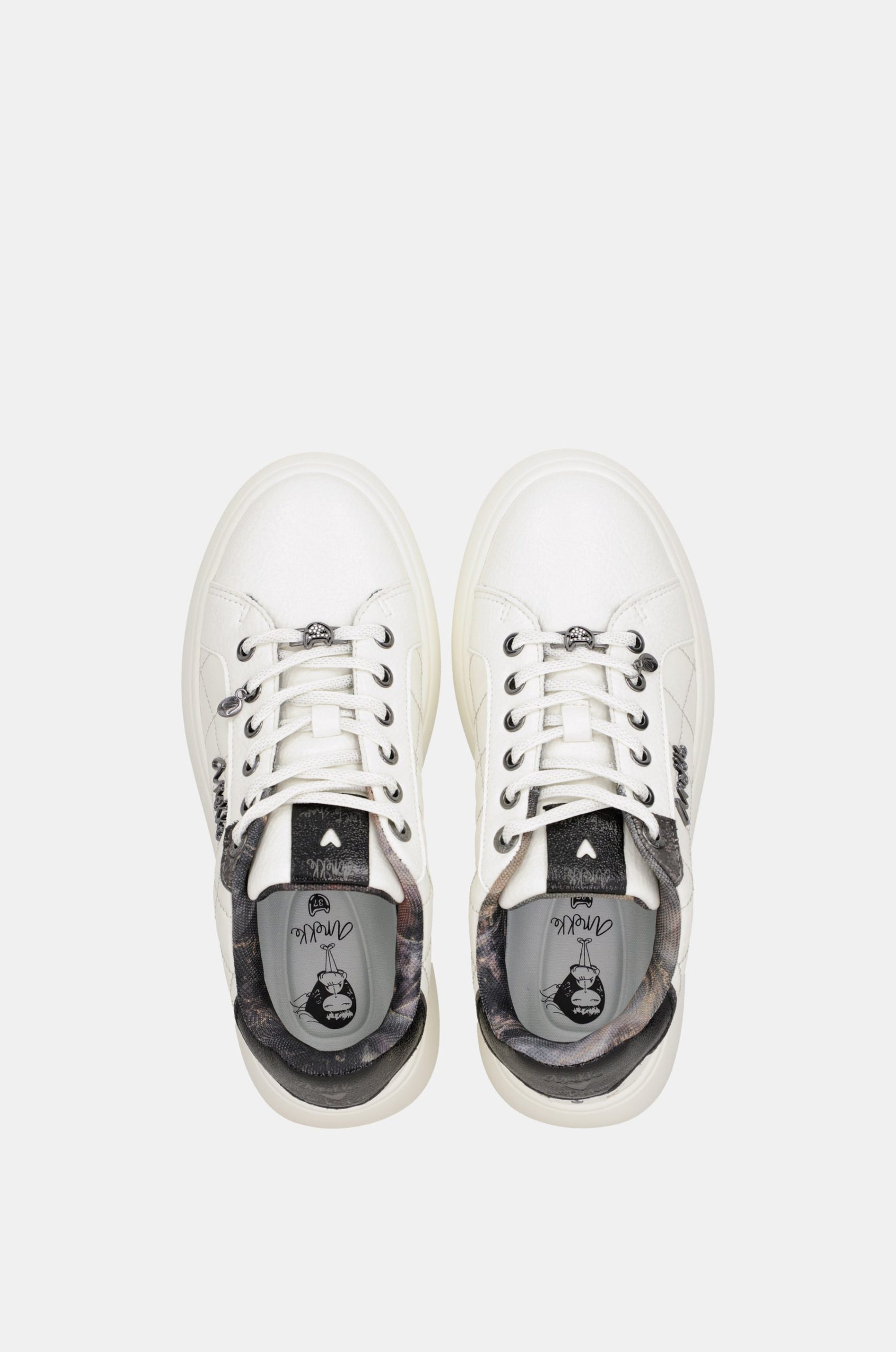 Style plus comfort in the perfect sneakers? That is right! With your new Anekke white sneakers. This original sneaker has a quilted effect thanks to its decorative stitching, with a wide white sole and platform, ideal for perfectly cushioning your step. The interior is printed and a removable cushioned insole makes them extremely comfortable. Their white laces feature decorative elements, making the design of these sneakers simply unique. Get your favourite pair for this season now!