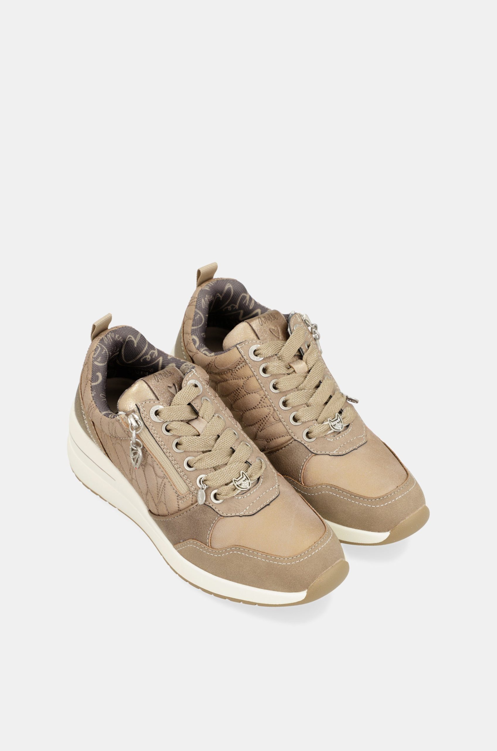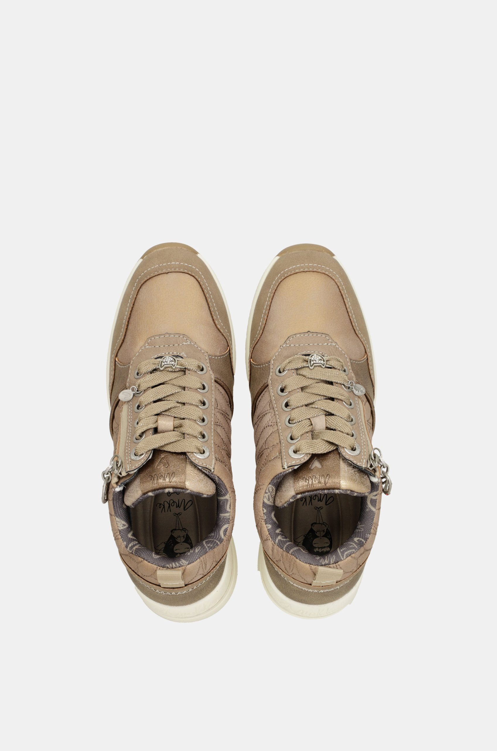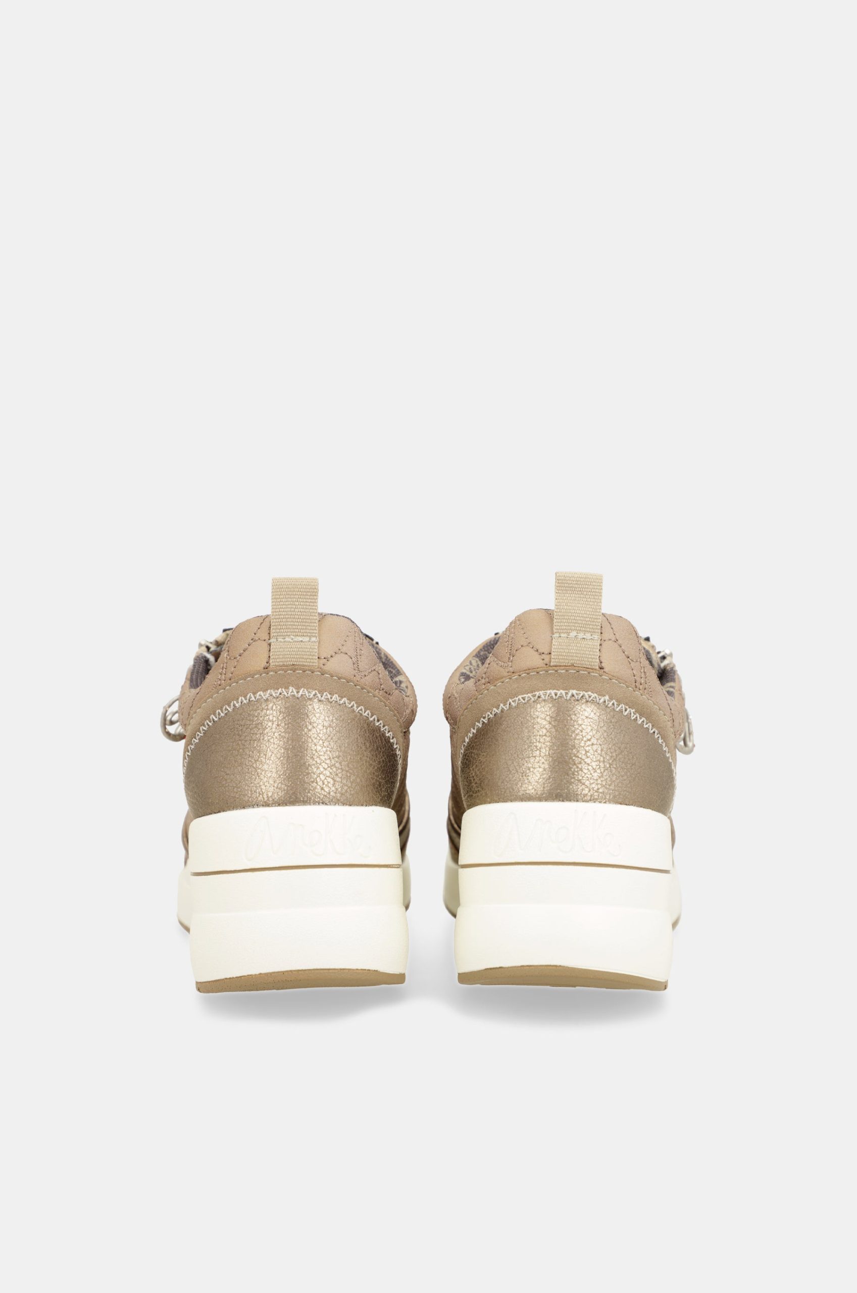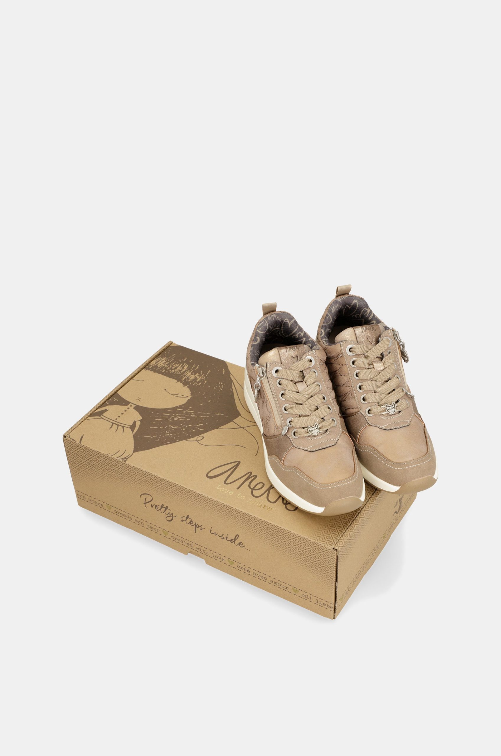 Versatile, stylish and so comfortable you will not want to take them off? Yes my dear, these are going to become your new favourites!These outer-wedge sneakers are not only stylish, but also so comfortable you will not want to take them off. Its brown base contrasts with the white sole, and its design is full of embroidered details, different shades of nude and decorative metals. They are lace-up sneakers with hundreds of details, and they have a side zip for easy fastening when it comes to putting them on. The sole makes every step comfortable, making them the perfect everyday footwear.They have all it takes to be your new favourites! Get them now on the website, and step hard with Anekke!