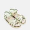 These red and printed sandals from the Alma collection feature strappy fronts and a buckle closure. The footbed also features the collection’s exclusive print.
