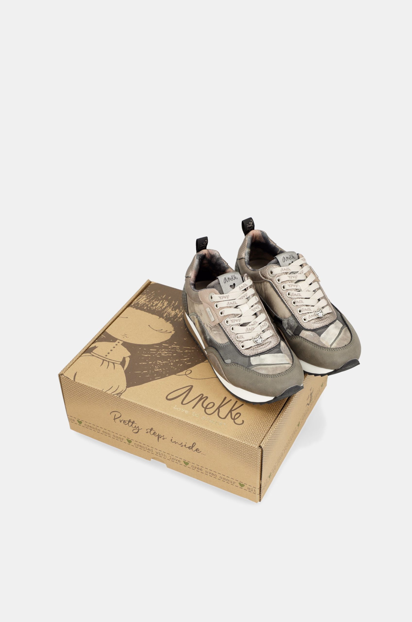 Are shoes the first thing you choose in your outfits? So with your new Anekke Travel grey sneakers, it will be easier than ever before.These original sneakers combine a grey base design with printed parts and countless unique details. The serrated sole ensures comfort at every step, with a slightly raised toe for easy walking and adjustable laces for a better fit. It also has a removable and comfortable insole for extra comfort.You choose how to wear them! They are easy to mix and match with any type of outfit, from the most comfortable to the most formal one. Still thinking about it? Get your new favourite sneakers now!