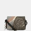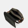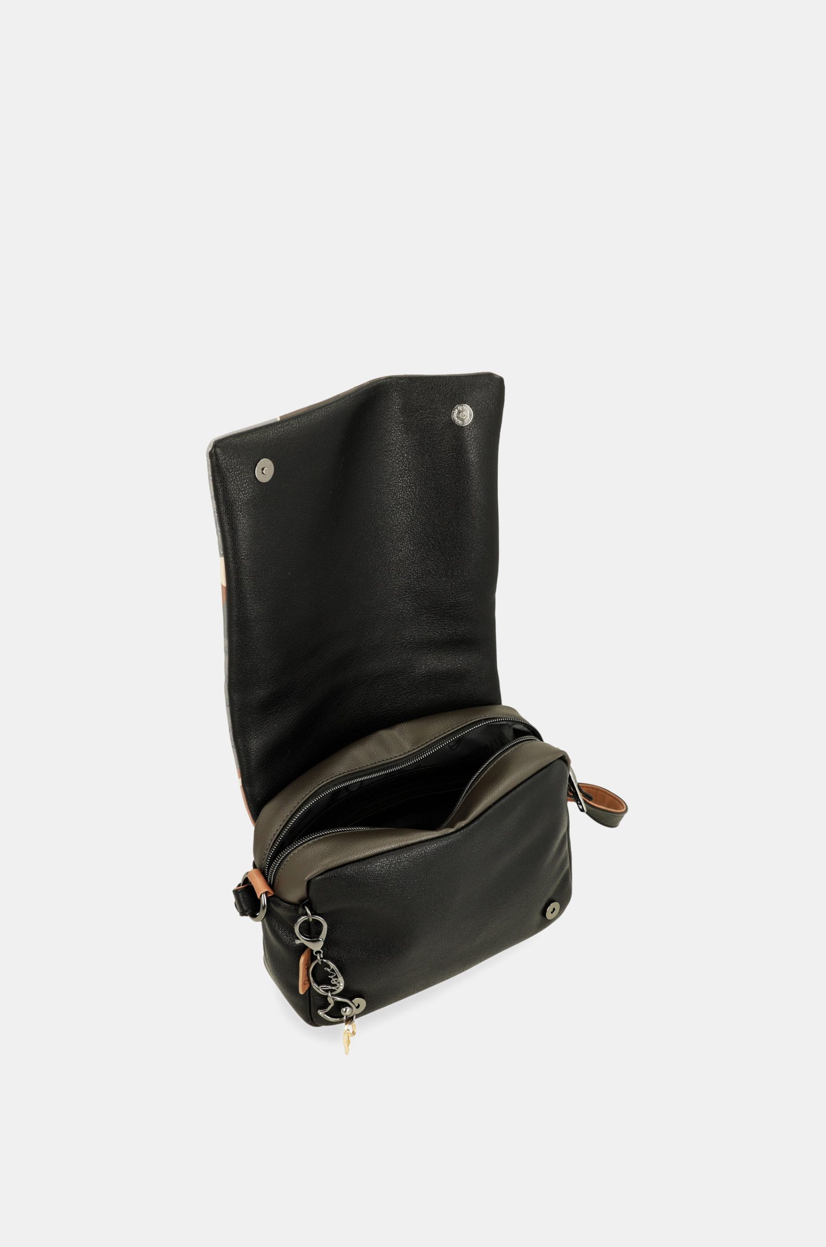 This flap crossbody bag is medium-large in size and features a back pocket. The handle is a shoulder strap adjustable to different lengths, perfect for adapting it to your preferred height. The interior is lined and has pockets.
