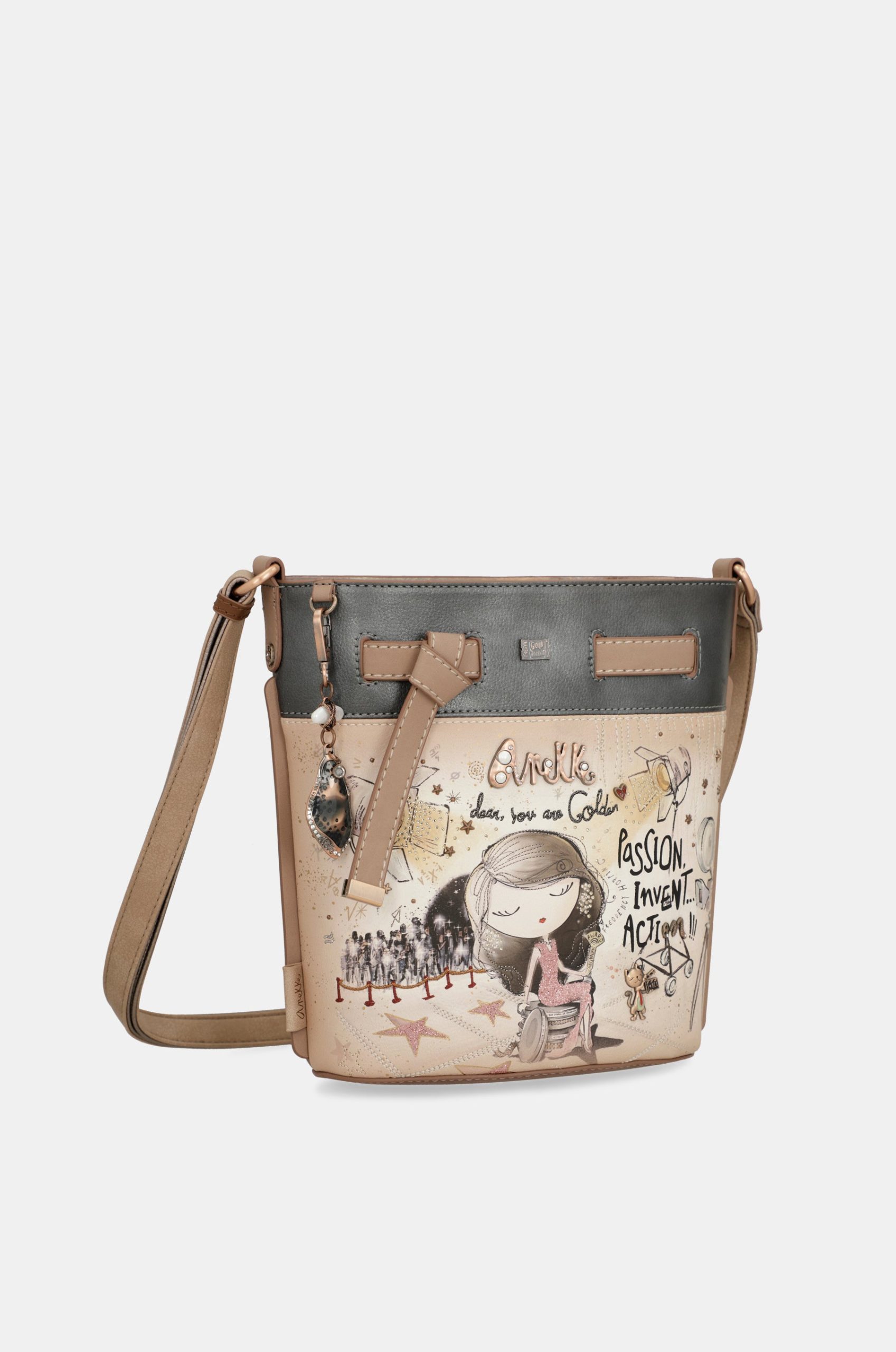 Finally, the details are the finishing touch: embroidery, shiny touches, star-shaped pins, metallic pearl logo, Towanda director’s pin and personalised patch or pullers. These are just some of the many details on this beautiful bag, which will make you feel like a true classic Hollywood diva too. What are you waiting for? Get yours now!