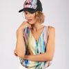 It’s the perfect accessory for days under the sun, or for those times you want to add a care-free touch to your look. Its unique design combines a dark background with an original multicoloured print and decorative pearls.