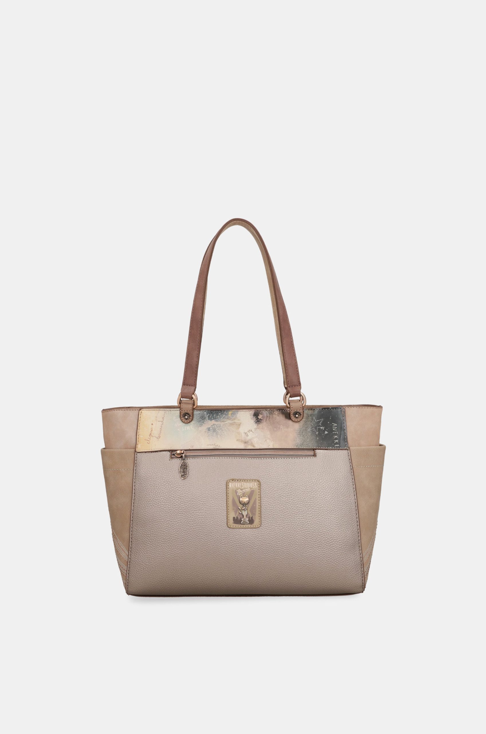 This large-sized shoulder bag features a zip closure, inner lining and pockets. It is perfect for carrying everything you need with you, thanks to its large capacity. It has two shoulder handles for hanging it up. It also has pockets on the front and back, and on both sides.