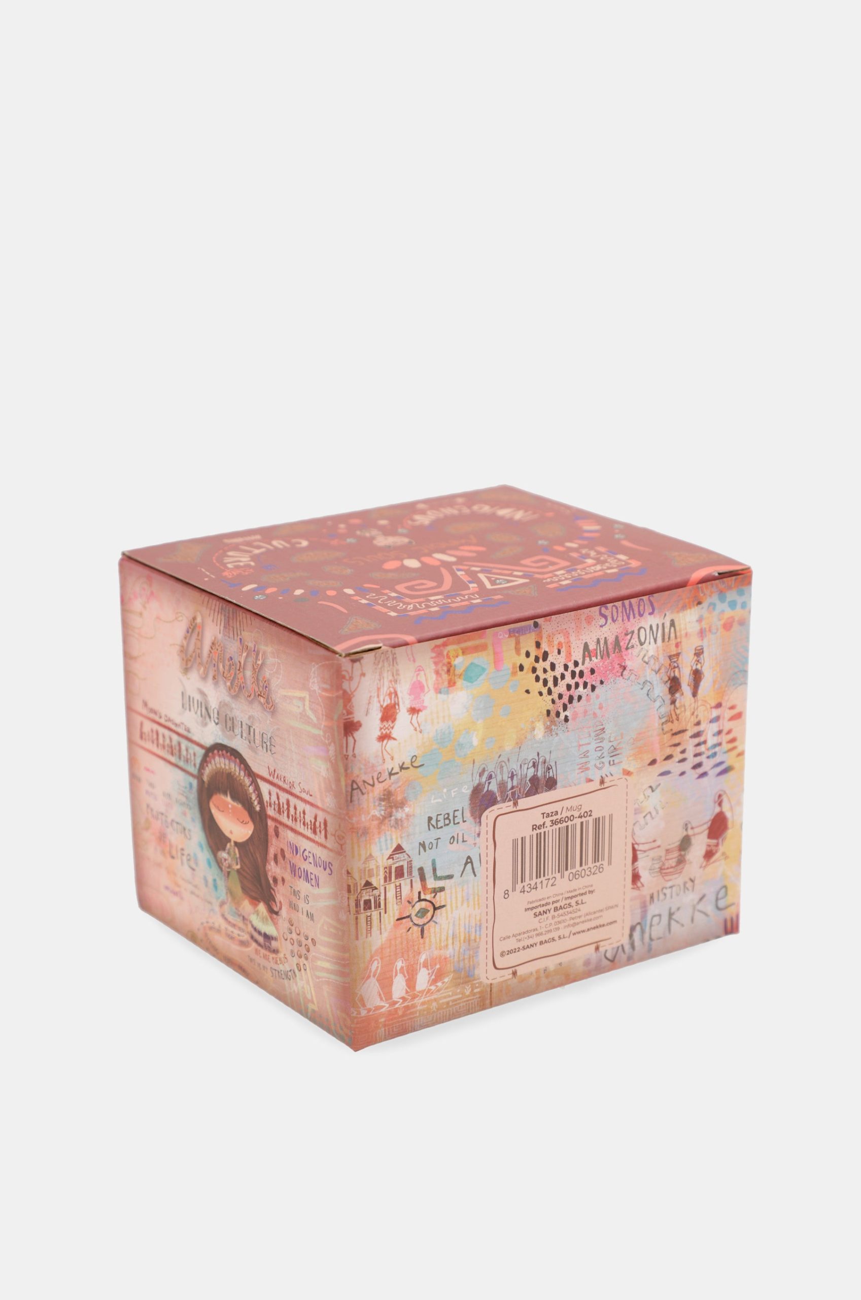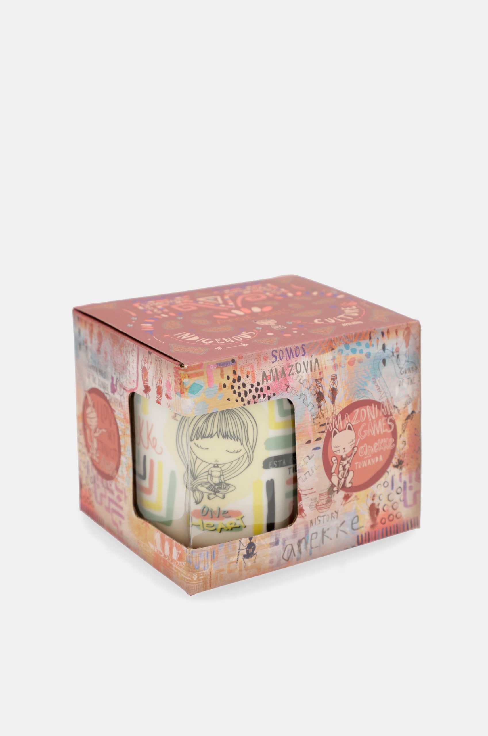 Its original design combines a white base with different motifs printed in multiple colors, inspired by the kene, a typical craft of the indigenous people of the Amazon. Anekke and Towanda also appear during their trip to the Amazon, and you will also find details on the inside of the mug, something that makes it super special. Also the packaging in which it is delivered is printed, full of details, which makes it perfect for gift giving.