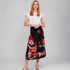 This midi wrap skirt is from the Alma collection and features a colorful print in contrast with black.