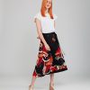 This midi wrap skirt is from the Alma collection and features a colorful print in contrast with black.