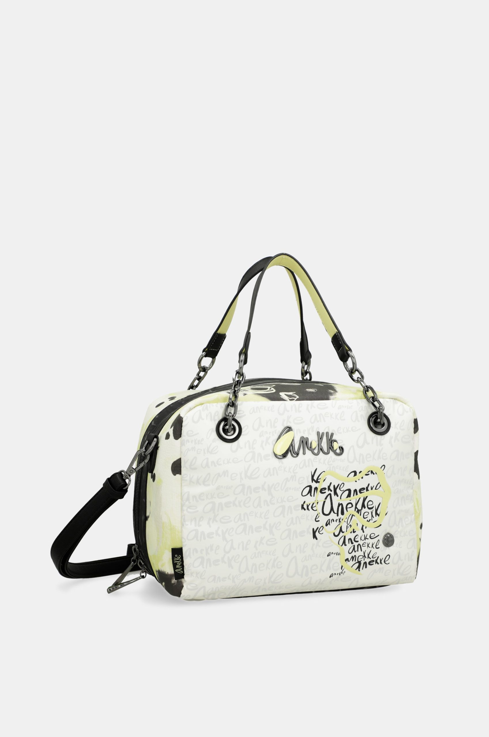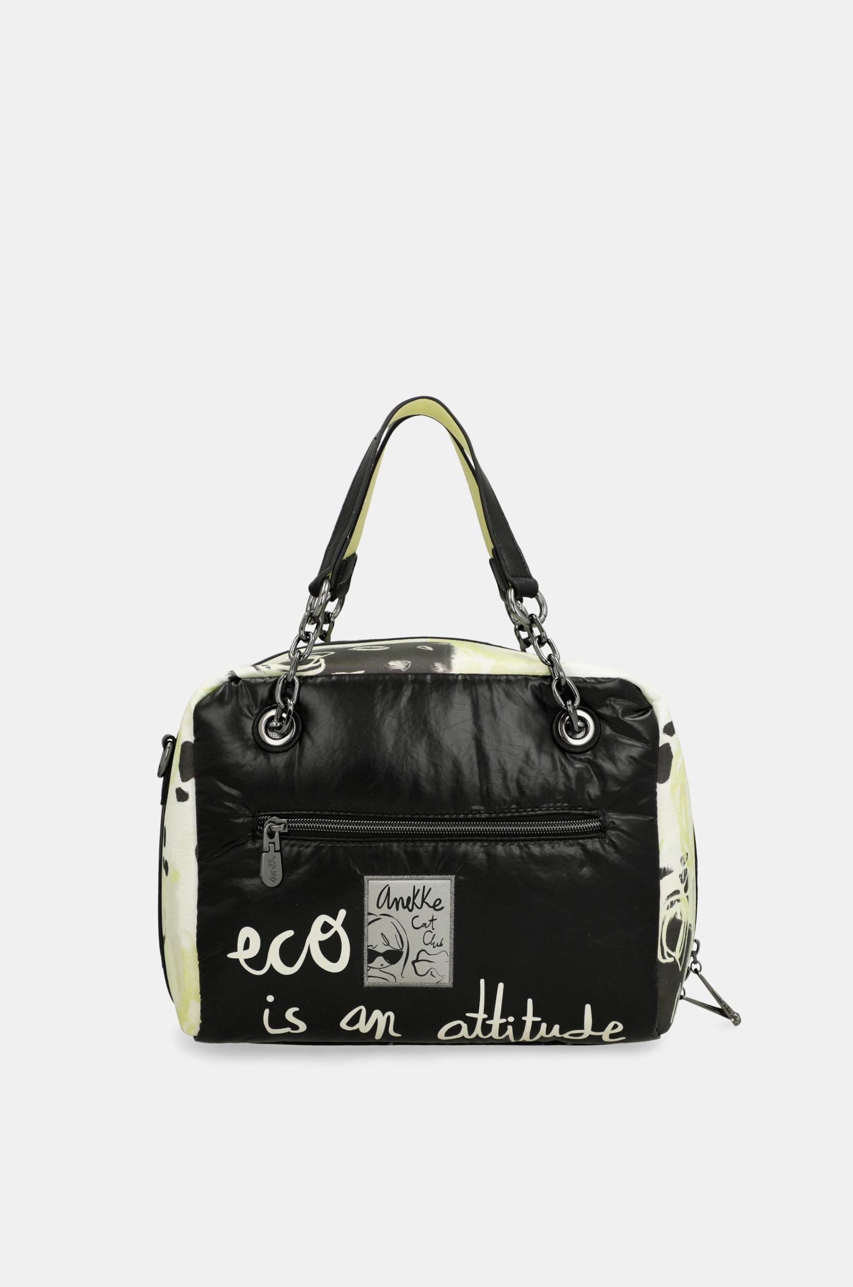 Each product in this capsule is made with 80% recycled materials and 100% love for the planet, carrying the Control Union Certifications B.V. label. This capsule is characterized by the comfort of each product, made with flexible materials perfect for everyday use. Its design combines a white base with abstract printed shapes inspired by Towanda’s silhouette, and original fluorescent accents. This short handle bag is medium-large in size and features a zip closure and inner lining. You decide how to hang it up! It has two handles and shoulder strap adjustable to different lengths. Still thinking about it? Get your new favorite from Anekke Towanda now—you’ll love it! Meow!