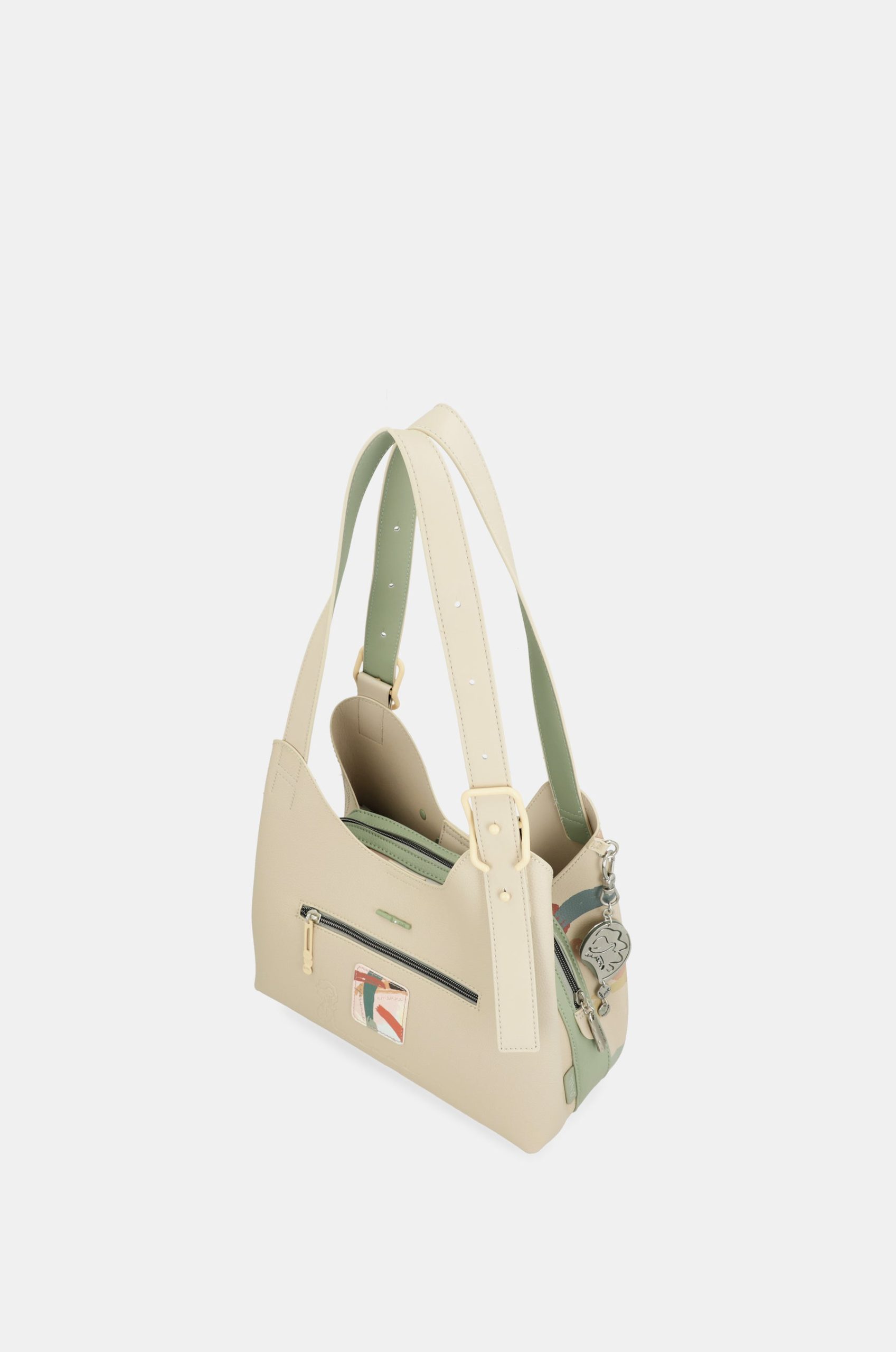This product is part of the Original line. This collection of straight shapes and minimal design tells the story of Anekke’s return home through embroidered details, overlays, and pins. After years of traveling the world, Anekke returns home to rediscover herself, her best version: her original version. This is a line that combines comfort and versatility, with meticulous attention to detail. This shoulder bag has 3 separate compartments inside, is large-sized and has a back pocket. The interior is lined and has pockets. It has two comfortable shoulder handles for hanging it up. Ready to travel with soul with Anekke? Every day of life is a new adventure to reconnect with our truest, most authentic self, the original one. And your new favorite from Anekke Alma will remind you of that every day!