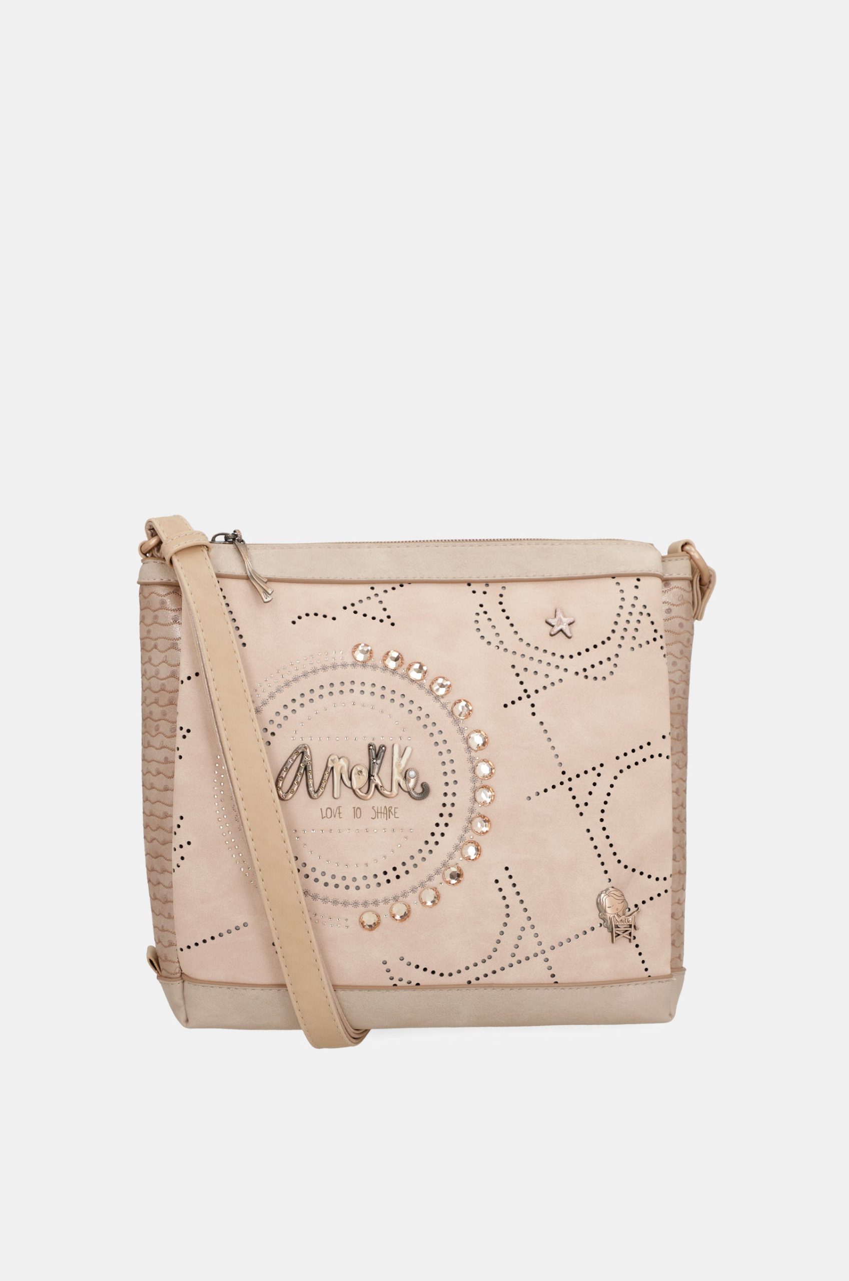The glamour of old Hollywood coupled with the perseverance of a great scientist ―this is the essence of the Studio Nude line within the Anekke Hollywood collection, inspired by the legendary classic film actress Hedy Lamarr. The history of this woman is full of great achievements, not only related to cinema, but also to another of her great passions, i.e. science. This amazing woman, she was the inventor of wifi! Each piece in this nude colour line is like a unique piece of jewellery: embroidery creates various silhouettes and shapes inspired by cinema and science, with hundreds of decorations such as rhinestones, personalised pins, metallic appliqués or pearls. The coloured sides and backs are a print inspired by the waves generated by wifi. Get ready to enjoy an accessory that tells the story of a unique woman, ready to make you dream every day.