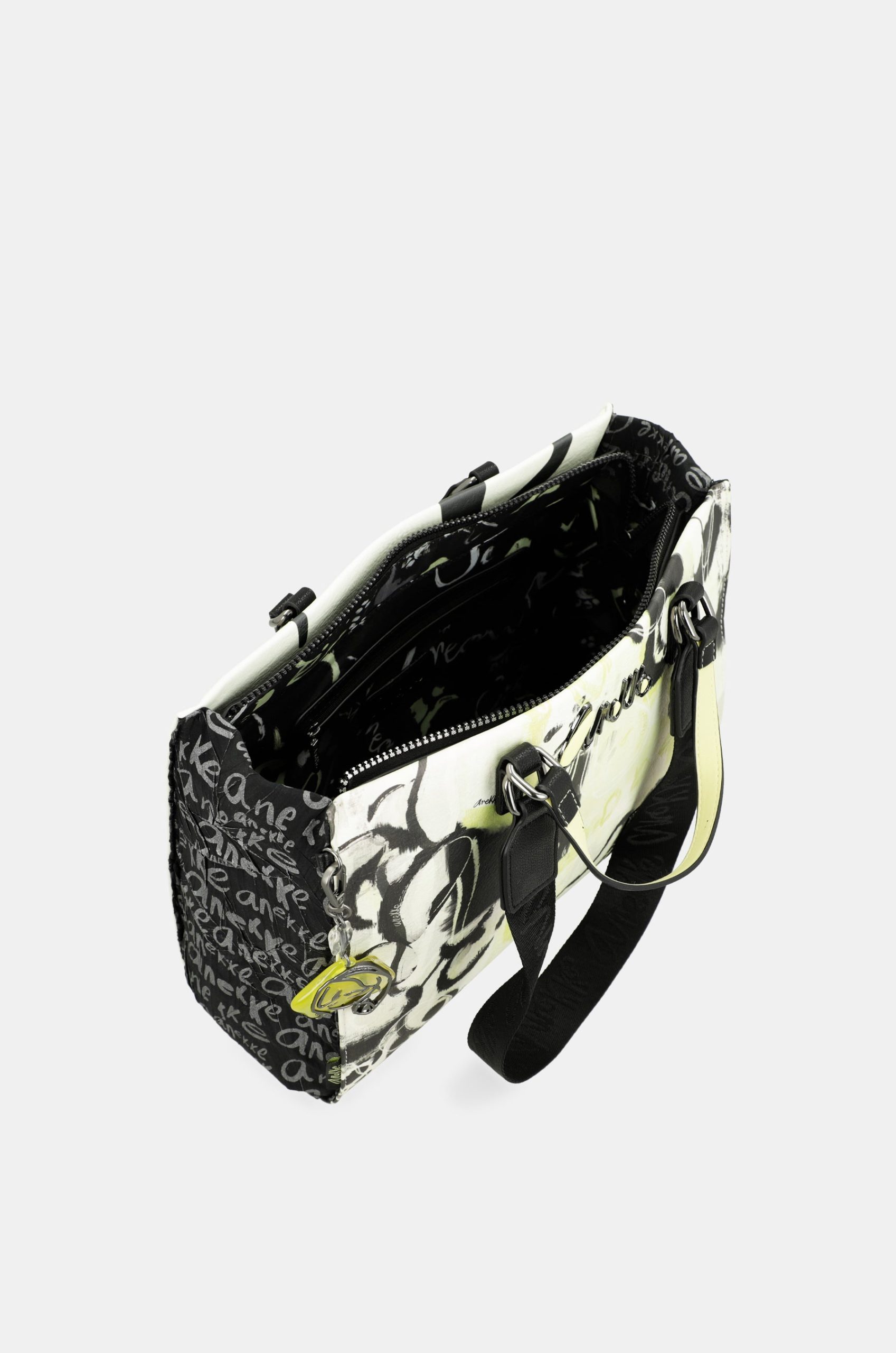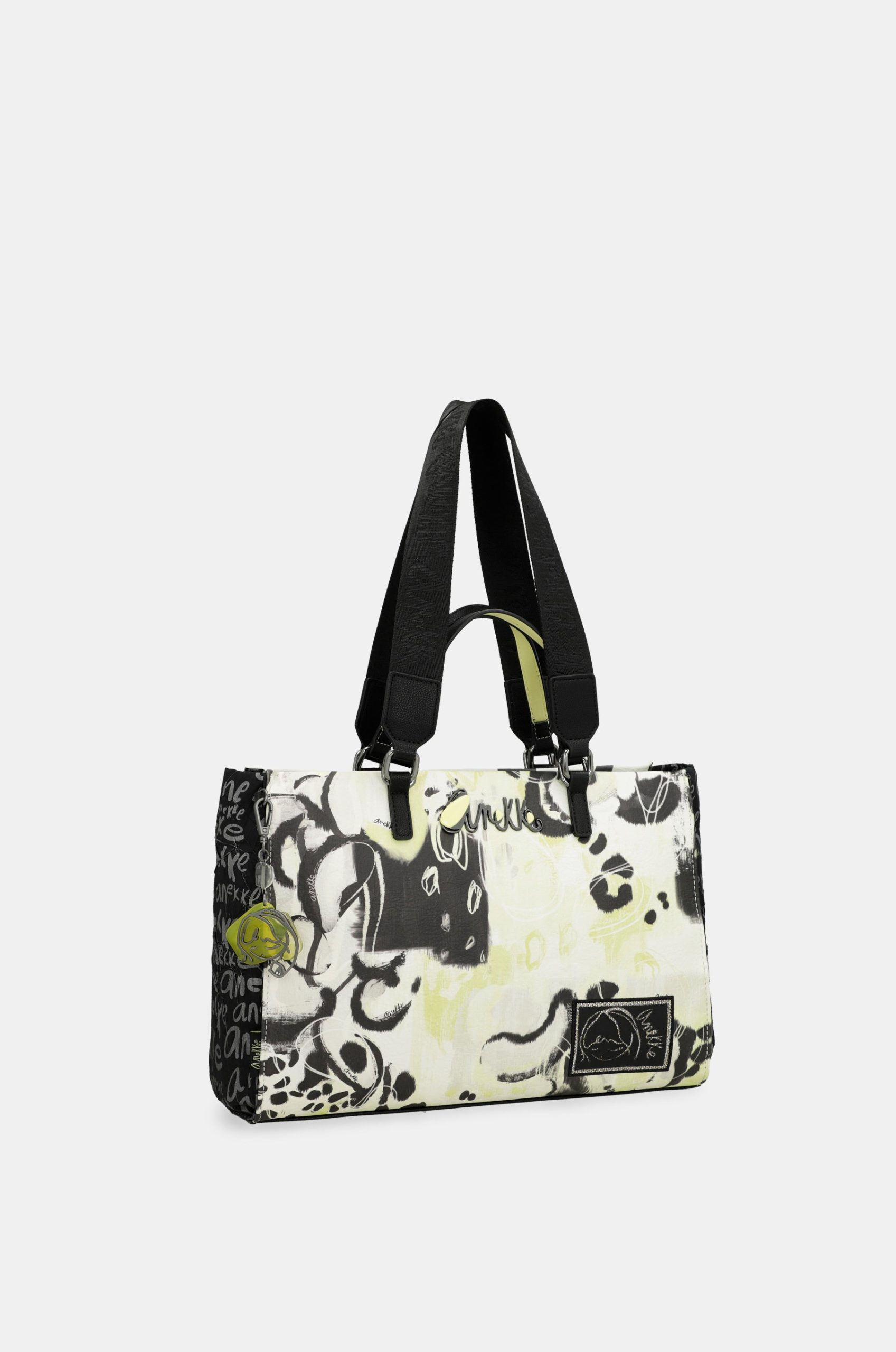 Each product in this capsule is made with 80% recycled materials and 100% love for the planet, carrying the Control Union Certifications B.V. label. This capsule is characterized by the comfort of each product, made with flexible materials perfect for everyday use. Its design combines a white base with abstract printed shapes inspired by Towanda’s silhouette, and original fluorescent accents. This is a large-sized tote bag with pockets on the back. It has a spacious lined interior and pockets. This bag has two wide shoulder straps and two handles to carry it as a briefcase. Still thinking about it? Get your new favorite from Anekke Towanda now—you’ll love it! Meow!