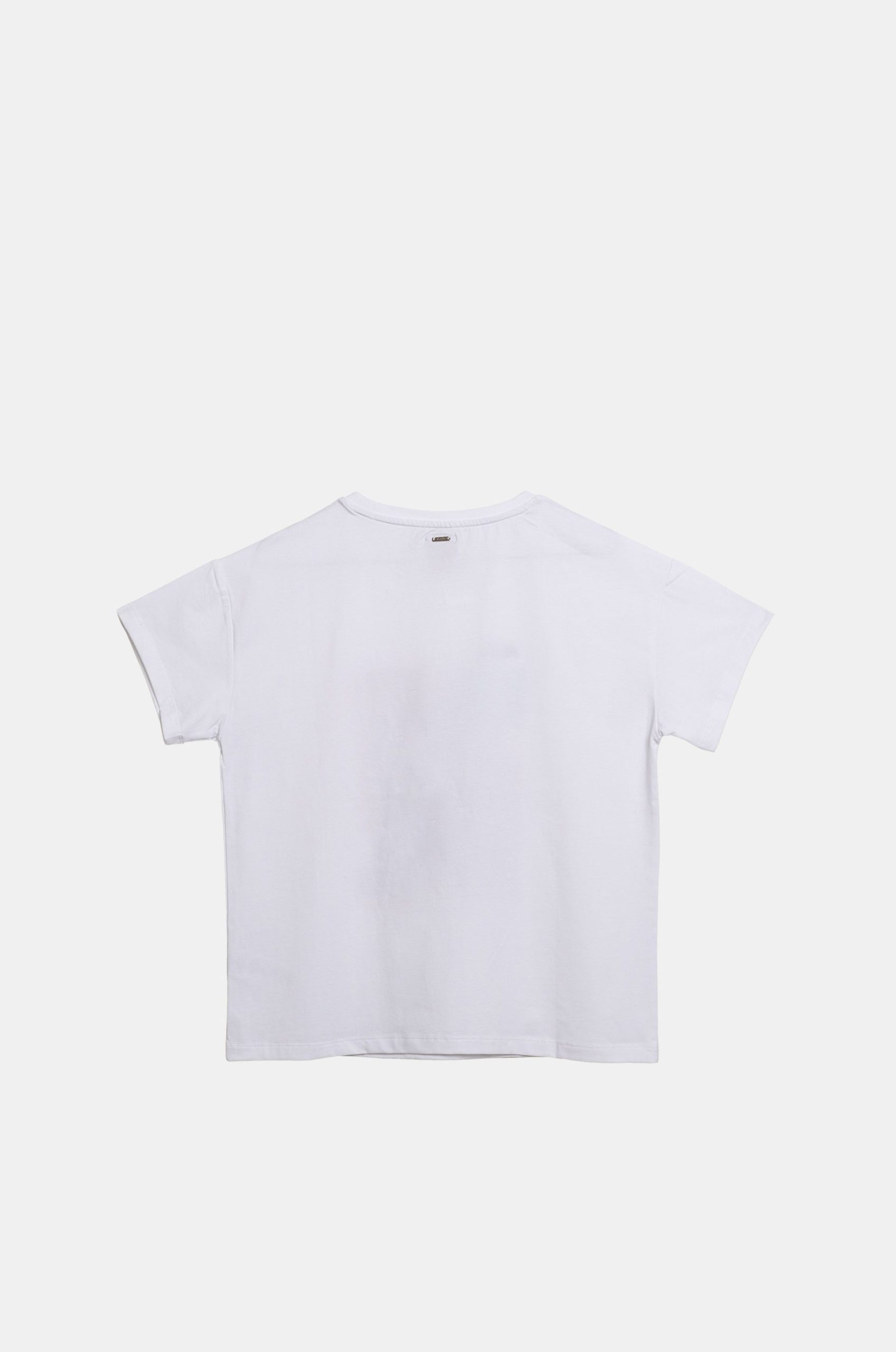 This white short-sleeve T-shirt is from the Anekke Alma collection. Its special touch is on the front, featuring the phrase “Girls want alegría.”