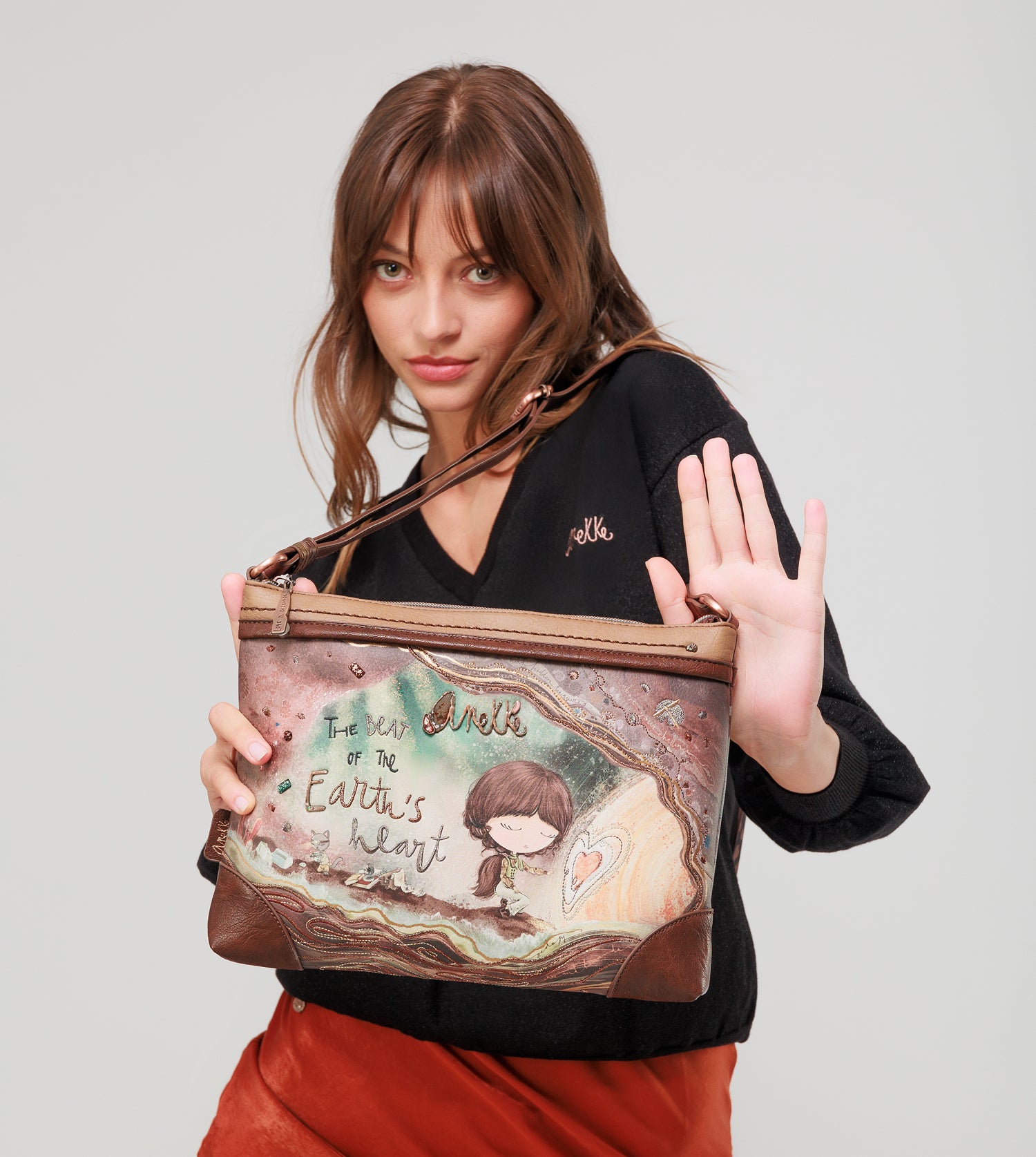 This large-sized rectangular crossbody bag has a zip closure, lined interior and pockets, plus a pocket on the back. The handle is a shoulder strap adjustable to different lengths, perfect for adapting it to your preferred height.