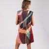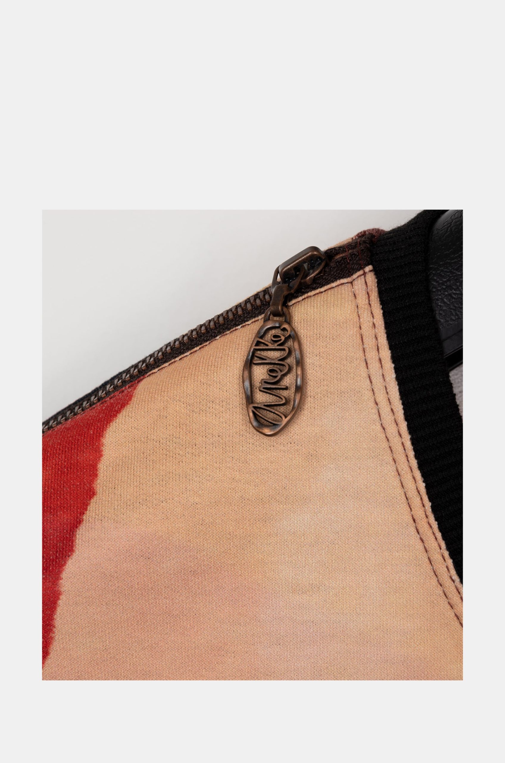 This short dress is sleeveless and has a crew neck, with navy blue trim. The original multicoloured design combines various shades, with original details such as the zippered shoulders or the texture around the logo.