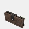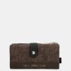 This large-sized wallet is made of flexible material. It has two main compartments: the back, where you will find a large billfold and space for banknotes and/or cards. It has a zip at the top, and inside you can keep coins. The entire interior is lined. It also has a removable card holder inside.