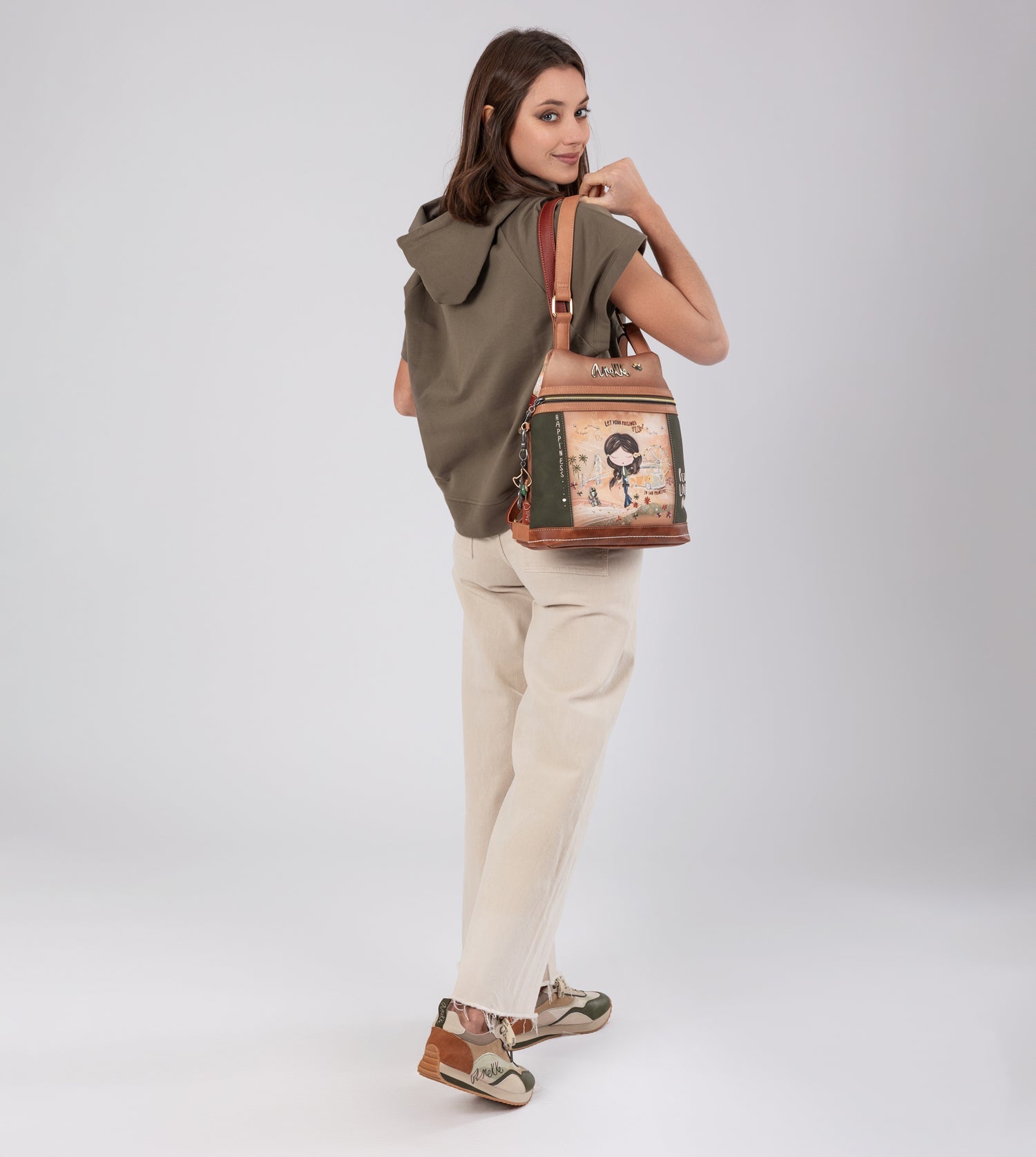 This original anti-theft backpack is perfect for your everyday life, thanks to its versatility. It has two main compartments: one at the front and one at the back, both with zip closure. When hanging it up, you can choose between two backpack straps, adjustable to different lengths, and a shoulder strap, so you can also wear it as a bag.